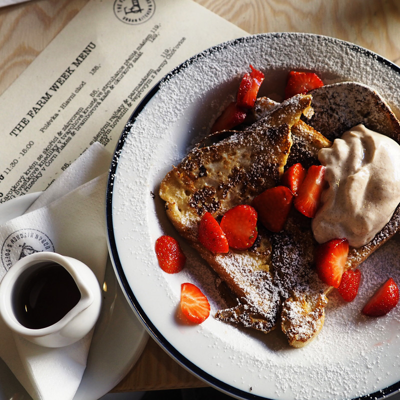 Farma je první místo, do kterýho jsem se v Praze zamilovala a vlastně taky to, ve kterým jsem se zamilovala, jestli to tak jde říct, haha. O týhle kavárně jsem psala už v jednom ze svých prvních pražškých článků (TADY) , nicméně to sem musím taky zařadit. Od doby toho prvního článku jsem tady těch francouzských toustů snědla nespočet, ochutnala další limonády a hlavně tady měla nejhezčí první rande, takže je to moje srdcovka. Proto už tuhle kavárnu beru za takový naše místo a náhodou se sem s Kubou zatouláme pokaždý, když se ocitneme na Letný. A náhodou máme vždycky oba chuť na něco sladkýho.