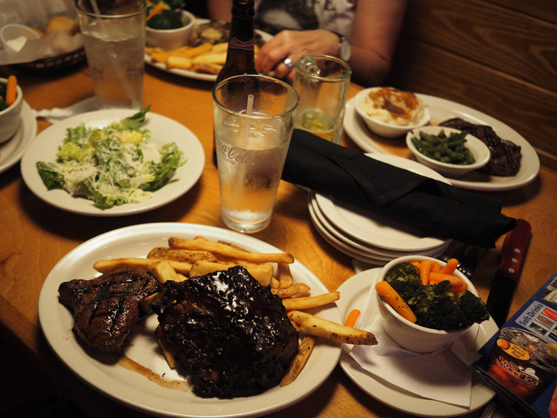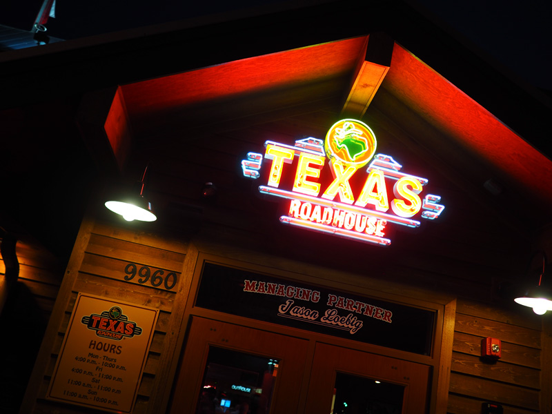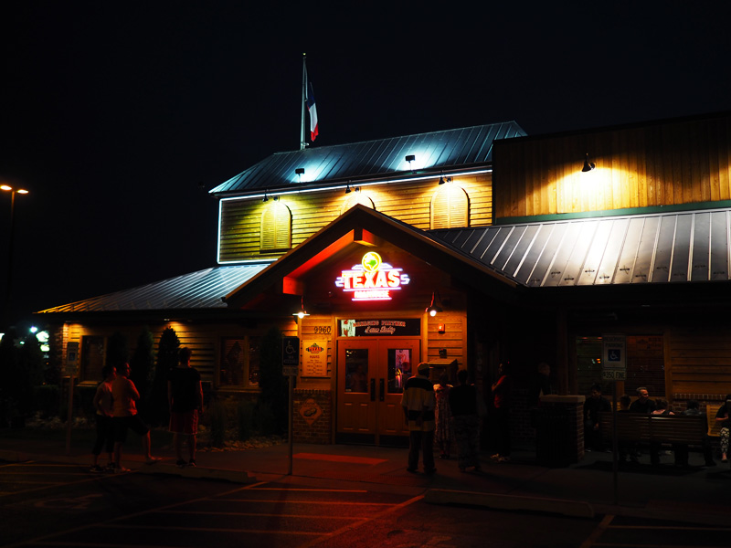 Po pěti hodinách jízdy jsme se ubytovali na kraji Chicaga a šli hledat restauraci na večeři. Po cestě jsme se totiž stavovali ve fastfoodu Wendy’s, na kterej jsme slyšeli chválu, ale byli jsme z toho tak zhnusený, že jsme si řekli, že žádnej fastfood už prostě ne. Večer se nám naštěstí podařilo kousek od hotelu najít Texas Roadhouse, kterej mi pro změnu vyrazil dech.
