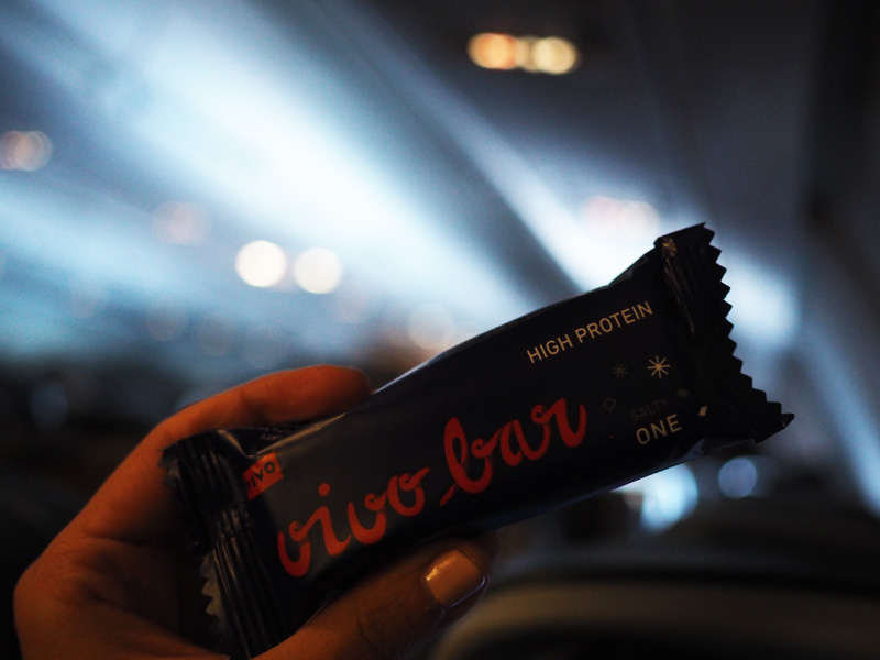 Protože jsme tuhle kvalitu vůbec nečekali, měli jsme s sebou i vlastní svačiny. A i ty padly :D. Tohle je třeba slaná Vivo Barka s příchutí sušených rajčat. Příjemná změna od všech těch sladkých proteinovek!