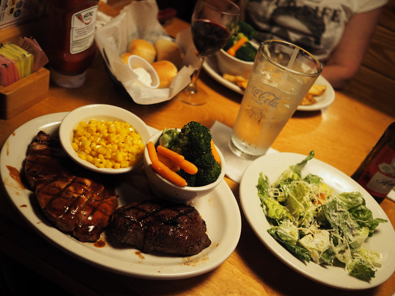 První totálně americký jídlo a zároveň nejlepší steak jakej jsem kdy měla. K němu ještě žebra, steakové hranolky a vařená zelenina. NEJ-LEP-ŠÍ.