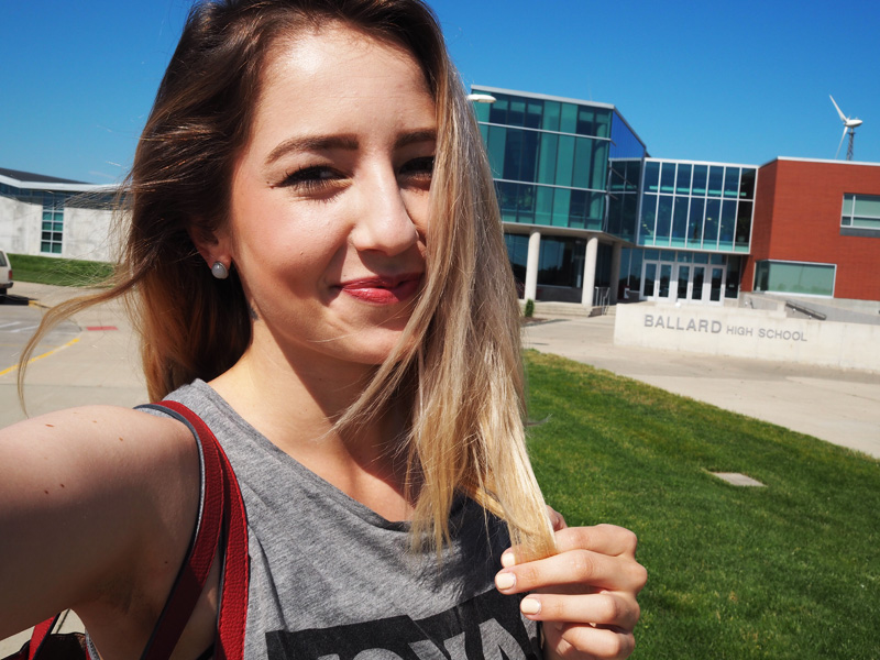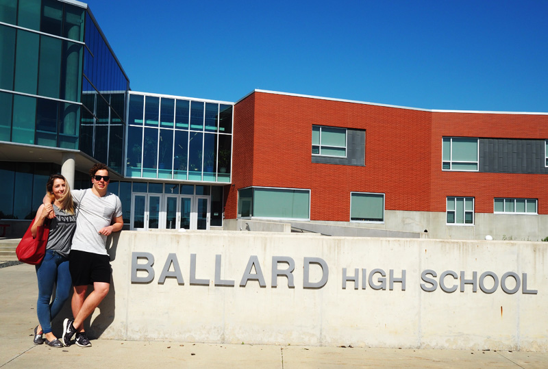Poslední let nás potom dopravil do Des Moines – kam podle pána u imigračního pohovoru NIKDO nejezdí – kde už nás čekal brácha a jeho americká rodina a po dlouhým objímacím vítání a představování nás odvezli další hodinu cesty do jejich domova. Bylo to celý hrozně zvláštní, bejt v takovýhle skupině a brácha měl na následující tři dny oficiálně dvě mámy, protože dostával současně stejný pokyny v češtině od mamky a v angličtině od náhradní mamky a bylo to fakt vtipný a roztomilý. Poseděli jsme s nima, navečeřeli se a šli spát pomalu ještě za světla, protože ten časovej posun nás odrovnal a byli jsme uplně KO. Další den jsme měli poměrně nabitej program, byli jsme si projít bráchovu školu, která byla první z mnoha věcí, co už mě stačily šokovat.