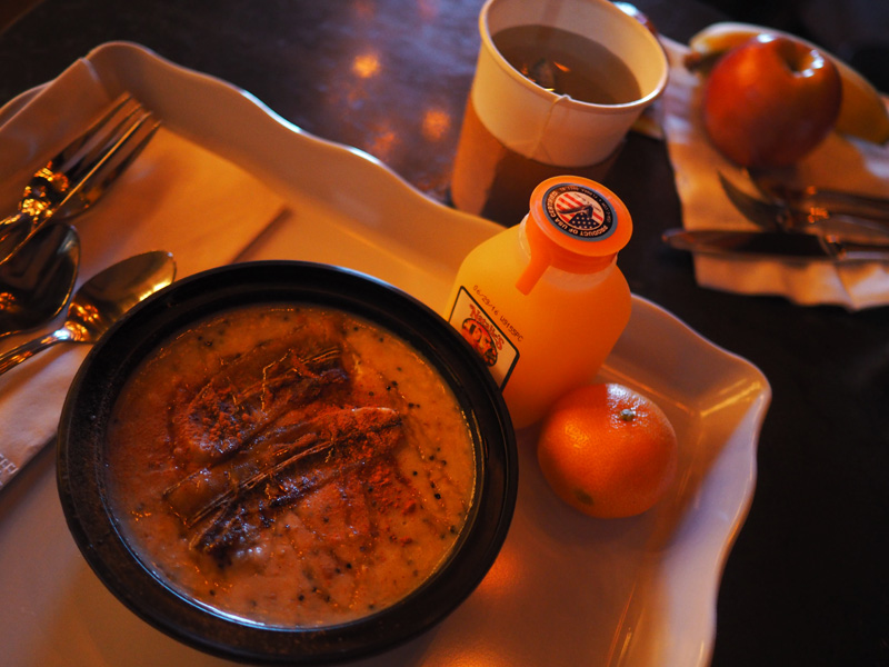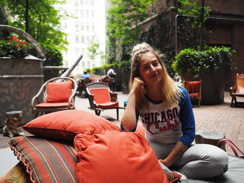 Další den už byl náš odletovej a víte co? Od rána pršelo. Uplně se nabízelo to brát tak, že je New York smutnej, že odjíždíme a tak plaká. My jsme aspoň nesmutnili, že nám něco uteče a strávili několik hodin na terase našeho krásnýho hotelu. A protože jsme byli líní i jít někam ven na jídlo, zkusili jsme poprvé hotelovou restauraci – já jsem si dala avokádovej wrap a mamka, která za celou dobu neměla nic smaženýho, dostala hrozný chutě a objednala si kalamáry s hranolkama. Ty hranolky byly snad nejlepší, co jsem kdy jedla, ale taky mi po nich bylo pěkně blbě :D.