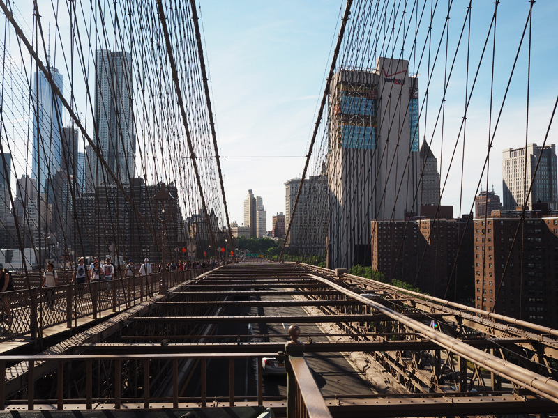 Místo, který mi ten den dalo rozhodně nejvíc, byl Brooklyn Bridge. Těšila jsem se na něj od začátku a moje tušení bylo opět správný. Sice na něm taky proudily davy, ale tam jsem je nějak dokázala odfiltrovat, protože moji pozornost braly uplně jiný věci.