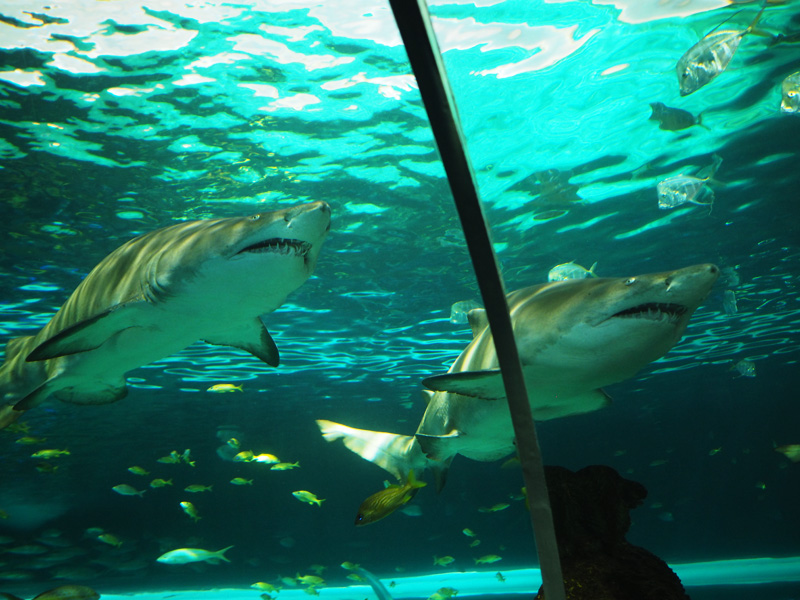 Průchod dlouhatánským tunelem, kde nad náma plavali všelijaký nebezpečný rybičky, pro mě byl dost děsivej. Detailní pohled zespodu na žraloka mi moc klidu nepřidal a když jsem si všimla, jak je v jednom místě přes celej ten tunel přisátá nějaká obrovitá ryba, která musela vážit x tun, fakt jsem přemýšlela nad tím, co se stane, až to sklo křupne. Brrr.