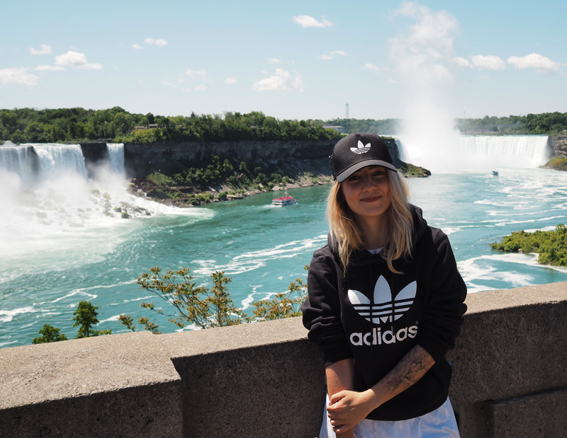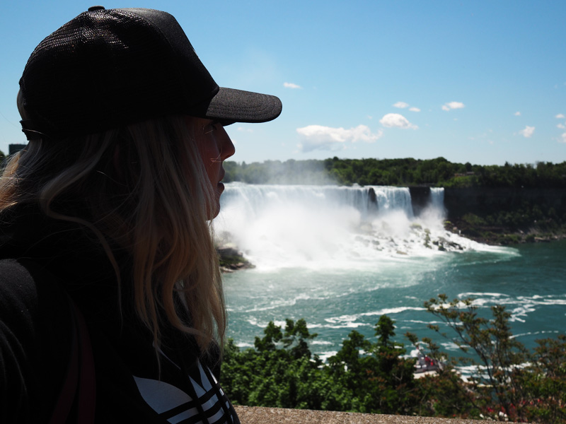 Další den jsme měli na programu Niagarský vodopády. Konečně bylo krásný počasí a docela se i oteplilo oproti dnu předtím. Od veleznámý přírodní památky jsem čekala hodně, ale předčilo to všechna moje očekávání. A to jak vodopády, že kterých jsem byla totálně odvařená, tak i celý městečko, který mě spíš šokovalo v negativním smyslu. Všechno bylo tak hrozně přeplácaný, že jsem nevěděla, na co dřív valit oči. Baráky postavený na střeše, všechno nakřivo, svítící cedule, vyhrávající muzika z každý hospody a ceny samozřejmě úměrný turistickýmu vytížení.