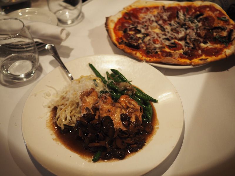 Po ubytování jsme pak našli první hezkou restauraci a zapadli na jídlo – kuřecí plátek s žampionama, fazolkama a těstovinama se sýrem byl výbornej. A ta pizza taky, haha.