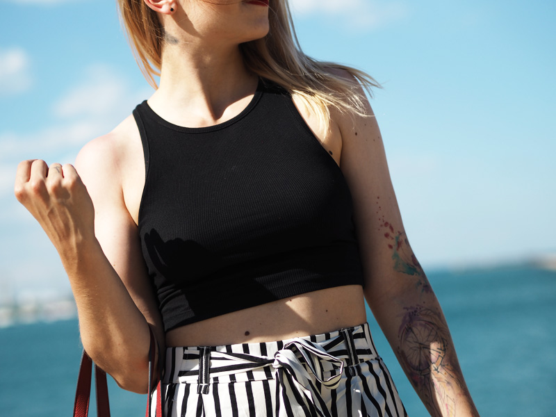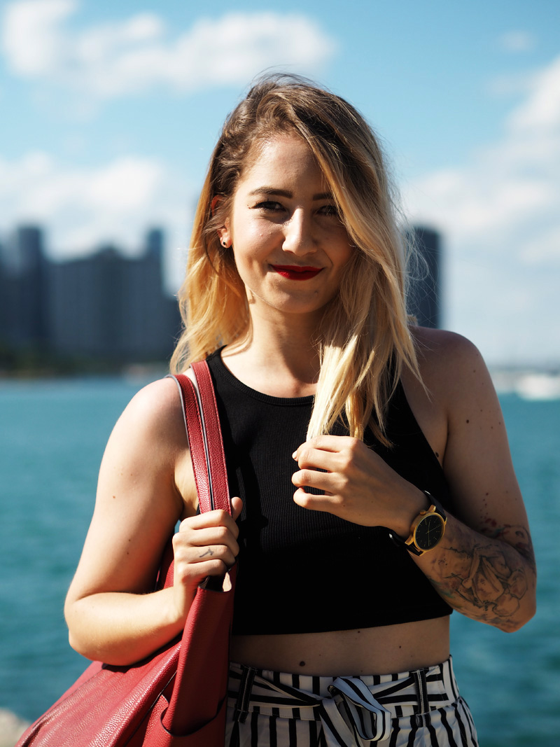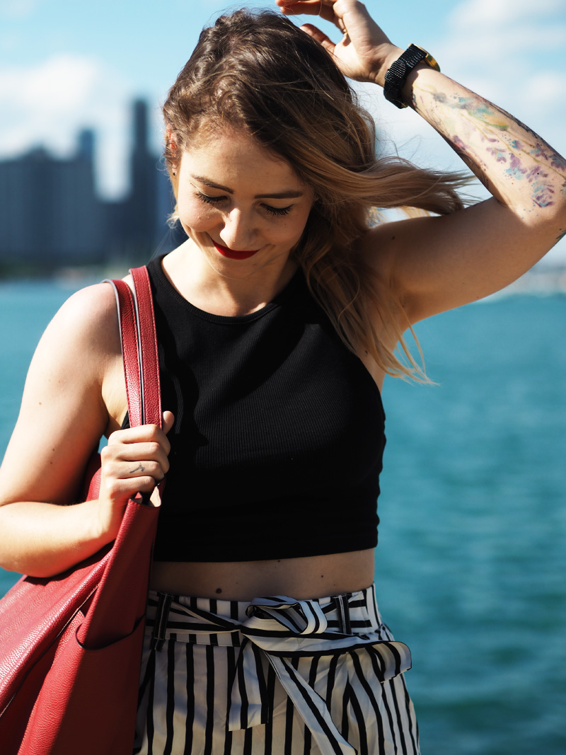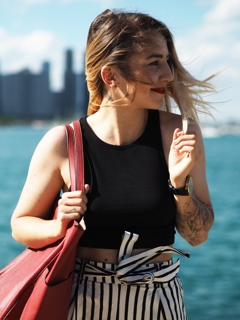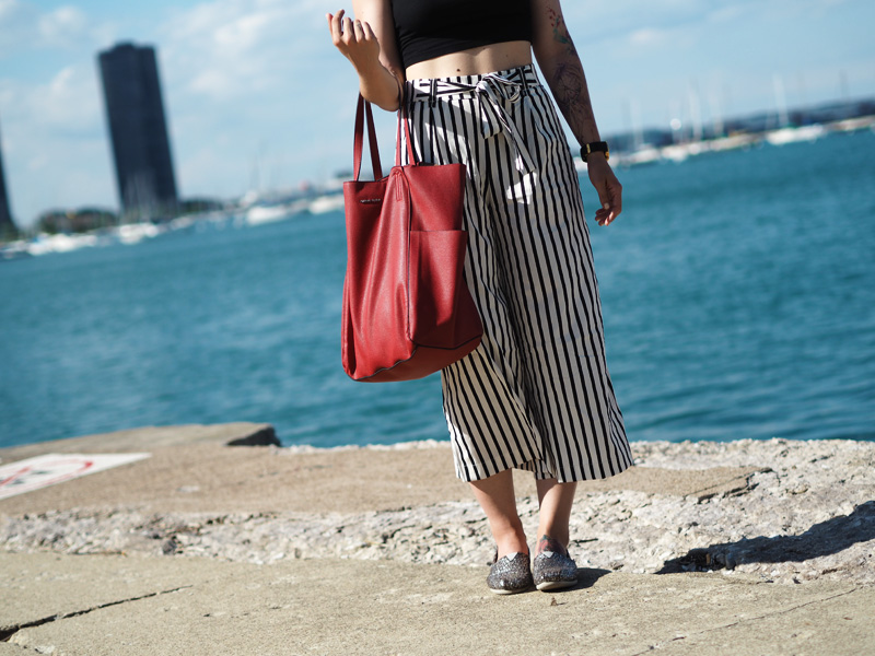 Vzhledem k tomu, že byla moje mami tak hodná a šikovná, že mi nafotila outfit, přináším Vám ještě před dalším deníčkovým článkem ukázku toho, co jsem měla na sobě poslední den v Chicagu a zároveň to, co jsem si tam koupila co mi bylo první den koupeno. Z americký Zary jsem byla nadšená, byl tam mnohem větší výběr než u nás a když jsem uviděla tyhle “pyžamový” cullotes, už jsem si to s nima šupajdila do kabinek. A s vrškem taky, protože crop topama moje skříň (natož cestovní kufr) rozhodně neoplývá. Tenhle den bylo zrovna pěkný vedro a protože jsme celej den chodili v podstatě podél vody a stíny mrakodrapů na nás nedosáhly, spálila jsem si ramena a ten pruh na břiše :DD. Je to moc krásný, věřte mi. Teď nás ale čekají tři dny v Torontu, kde je pro změnu pěkně hnusně. Nicméně musím zatím říct, že je to snad nejlepší rodinná dovolená na jaký jsem kdy byla, protože to není jen klasika válení se na pláži a neustálý žraní v rámci all-inclusive (ne že bych to nedala líbit :DD), ale spoustu toho nachodíme, objevíme a mě se tak úžasně zvětšuje rozhled a zároveň i touhy ohledně dalších životních směrů. Kromě toho mám taky radost z toho, že jsem docela schopná si tady hlídat i jídlo, volit většinu zdravejch variant a za jeden den jsme nachodili už třeba i 22km, takže ani to fitko není až tak nutně potřeba, protože večer padám do postele totálně vyřízená a s bolavejma nohama.
