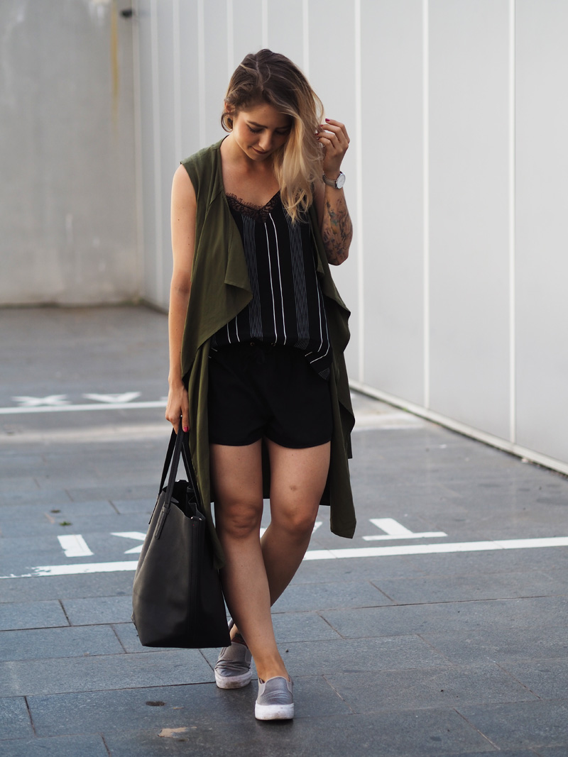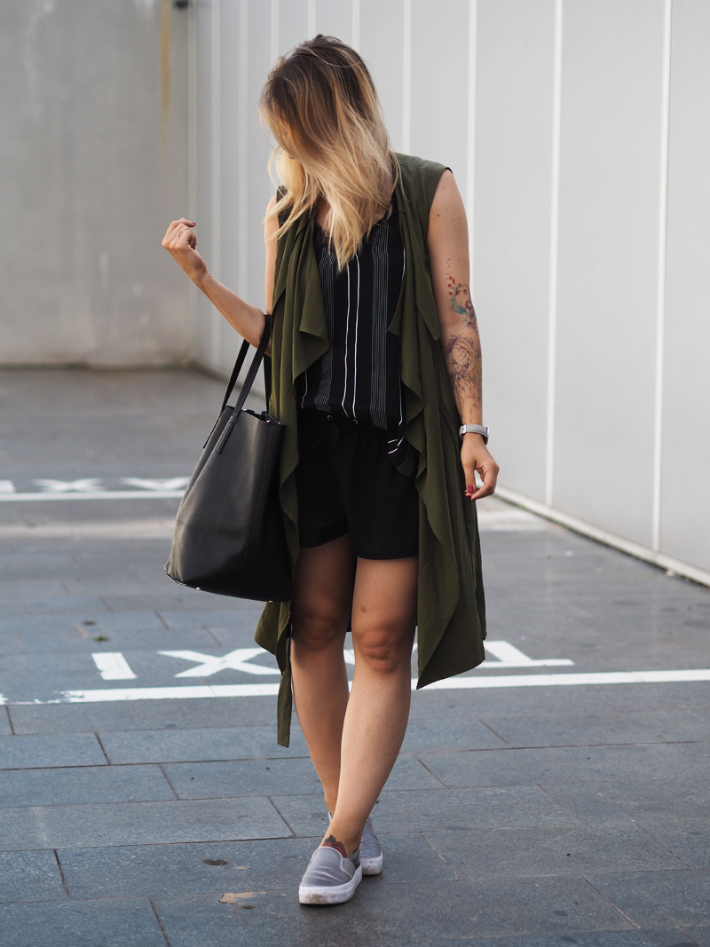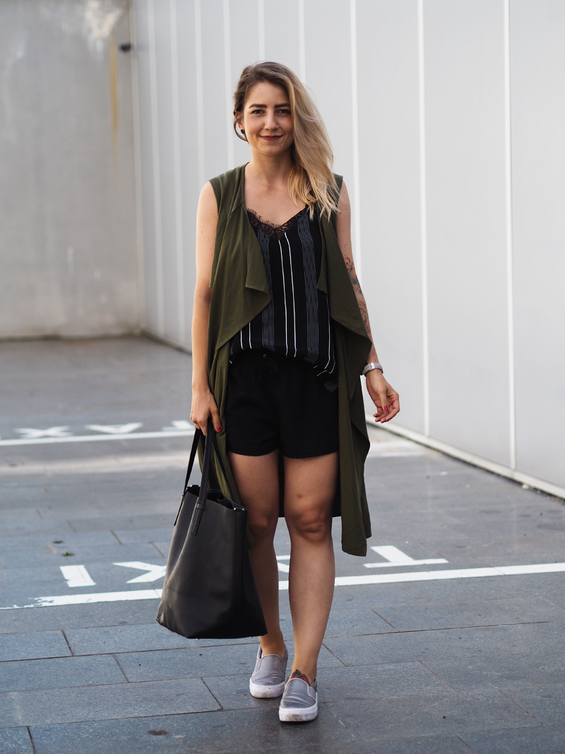 V uplně první řadě bych Vám chtěla strašně moc poděkovat za tu spoustu krásnejch komentářů u minulýho článku, hrozně jste mě potěšili a opravdu nebylo mou zamýšlenou pointou dostat tolik chvály od Vás všech, takže DĚ-KU-JU! Dnes Vás vítám u outfitu, kterej jsem v posledním týdnu měla na sobě v menších obměnách hned několikrát, tak už to bývá, když se v nějaký kombinaci cítím extra dobře a zároveň pohodlně. Tyhle kraťasy z Primarku se mnou přežívají už asi třetí léto a za nic bych je nevyměnila, protože jsou vzdušný, nikde nepnou a jdou ke všemu. Top je naopak uplná novinka – opět slevy v Mangu, skoro nikde jinde jsem nenakupovala 😀 a khaki vesta je už starší úlovek z Mohita a přítel jí říká “klasická blogerkovina”, něco na tom asi bude, my jsme prostě na tyhle plandavý vrstvy trochu ujetý. Každopádně si myslím, že je to kousek, co se v šatníku rozhodně neztratí, naopak dokáže oživit spoustu jednoduchých outfitů jako právě ten můj dnešní. Co vy a vesty? Máte nějakou nebo Vám to přijde jako zbytečnej kus oblečení?