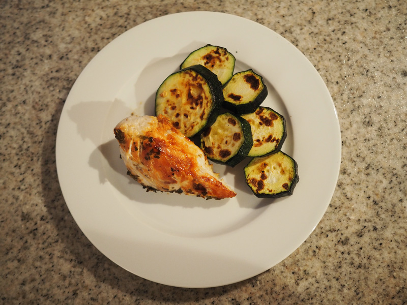 A tady kuřecí prso, který vypadá na fotce uplně maličký, přitom vůbec nebylo, opět s cuketou. Na to, že většinu čas jím brokolici mě docela pobavilo, že se tady ani jednou neobjevila. Polepším se a zhruba za týden a kousek se vidíme u třetího dílu!