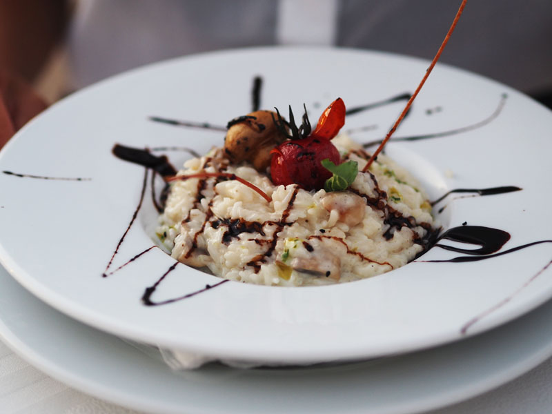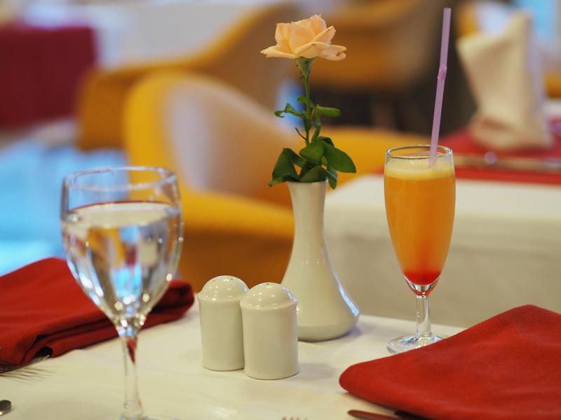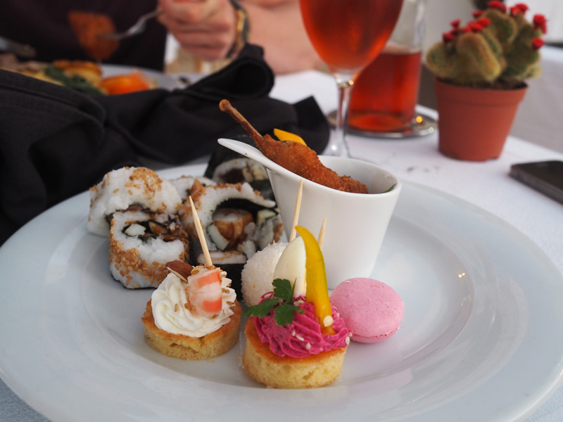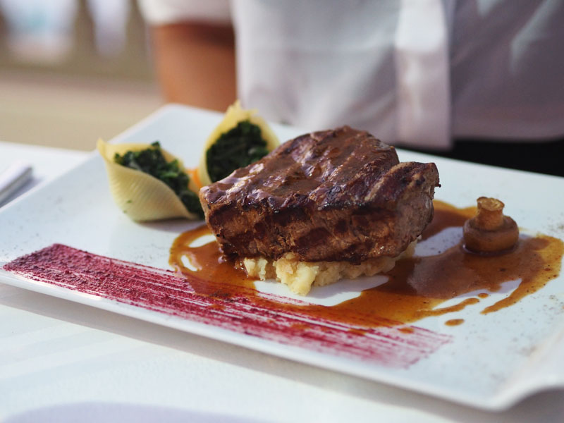 A pro změnu jídlo. V rámci pobytu jsme jednou mohli navštívit restauraci ve vrchním patře hotelu, kde jsme si nenabírali jídlo formou bufetu ale vybírali si z jídelního lístky tři chody. Bylo to parádní a hlavně jsme tak během večeře na balkoně viděli i překrásnej západ slunce!