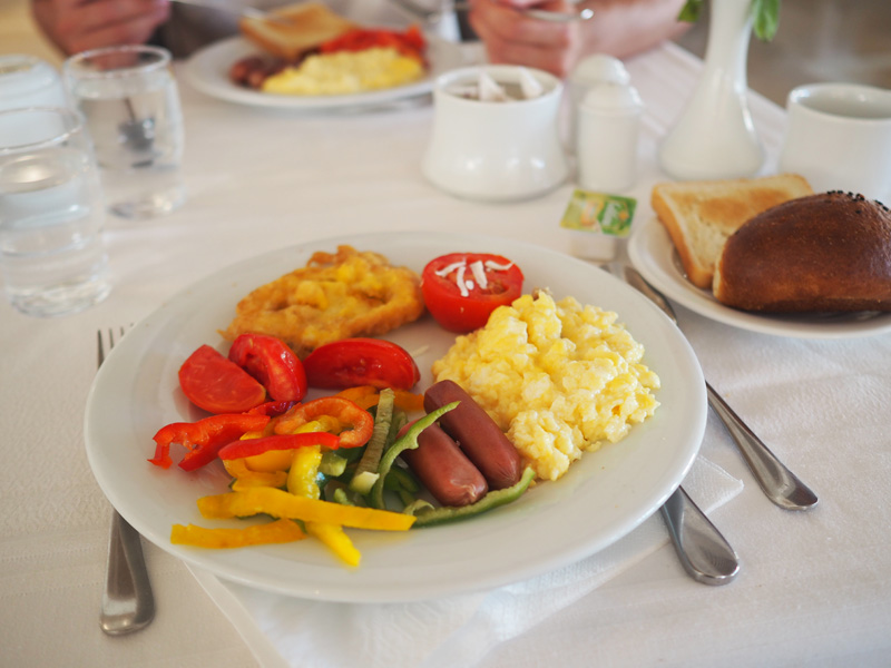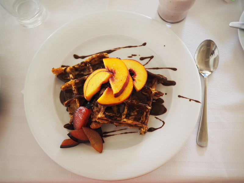 Nejvíc jsem byla zvědavá na snídani a vzbudila jsem se tak už někdy před sedmou, což se mi normálně opravdu neděje. Radost mi udělal velkej výběr a každá snídaně se mi tak skládala ze slanýho i sladkýho chodu. První ráno byly dokonce vafle a to uplně perfektní. Což mi připomíná, že nutně potřebuju domů vaflovač – nemáte tip na nějakej malej a levnej?