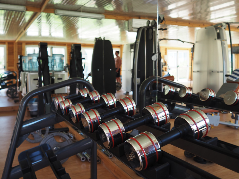 A i proto jsme taky trávili pravidelně každé poledne hodinu ve fitku. Navíc to taky bylo jediný místo, kde se to dalo v tom největším žáru přežít.