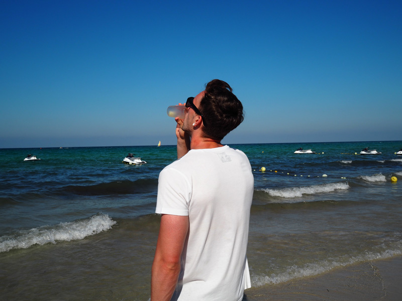 Opalovací stanoviště jsme měli sice u bazénu, ale na pláž jsme chodili každej den, protože moře bylo krásný, čistý a docela průhledný. Navíc chození v písku miluju – kdo taky ne! Jedno ráno jsme byli před snídaní na pláži běhat, oba jsme si ale brutálně namohli lejtka a achillovky z boření se do písku a i ráno v sedm už bylo dost strašný vedro :D.