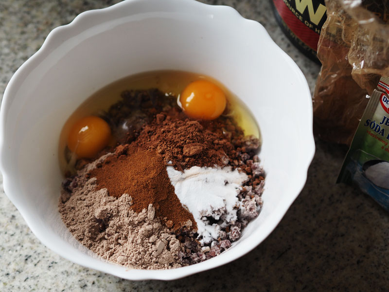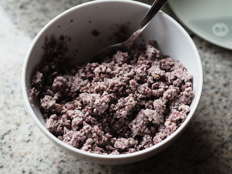 Všechny ingredience by se měly společně do hladka rozmixovat, nicméně můj ponornej mixér je osamocenej v Praze a v Hradci máme “jen” Nutribullet, kterej bych při mixování suchých ingrediencí uškvařila, takže to jen na chviličku zmáčknu a hned zas vypínám a fazole mám tak rozmixovaný jen napůl, což nakonec ničemu nevadí.