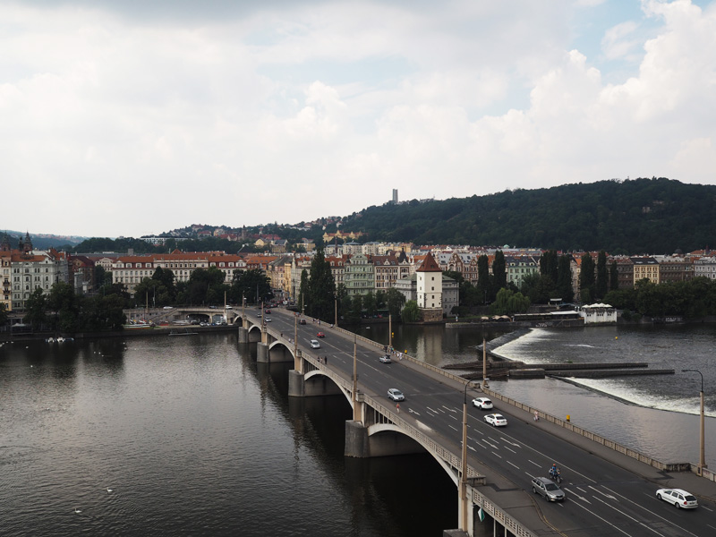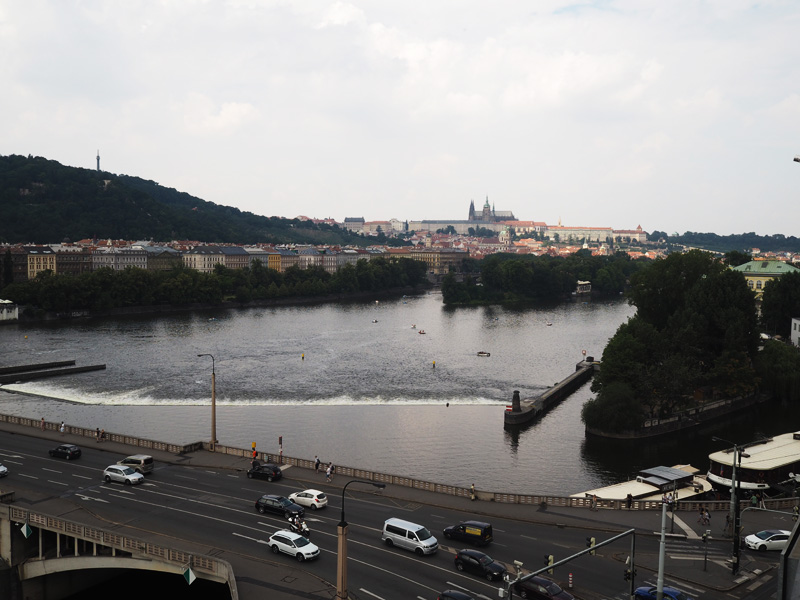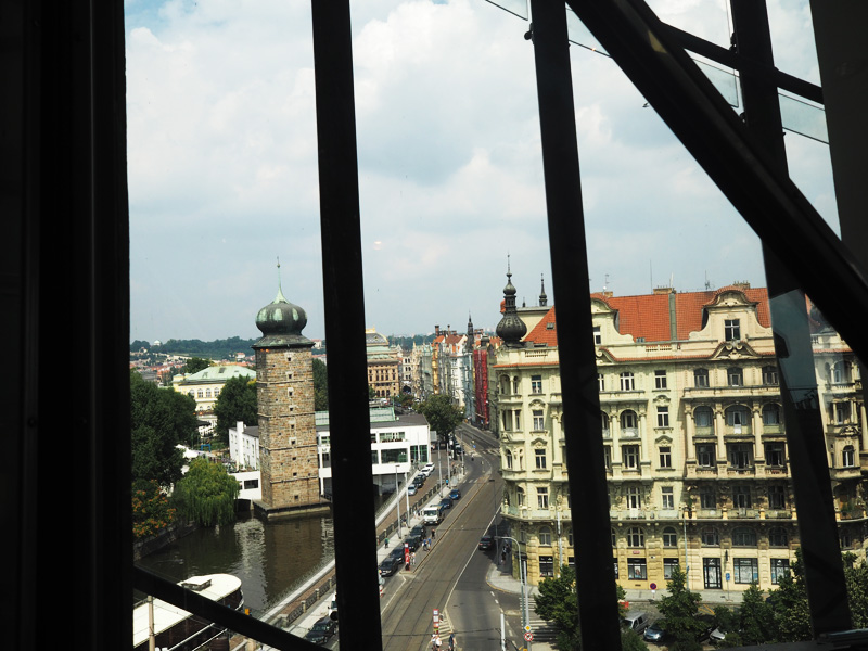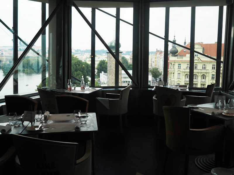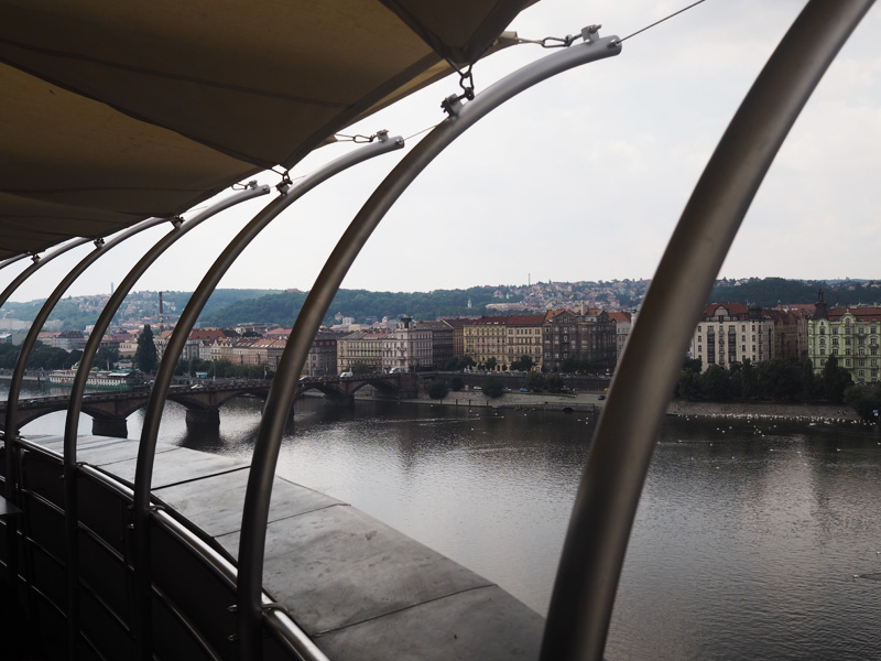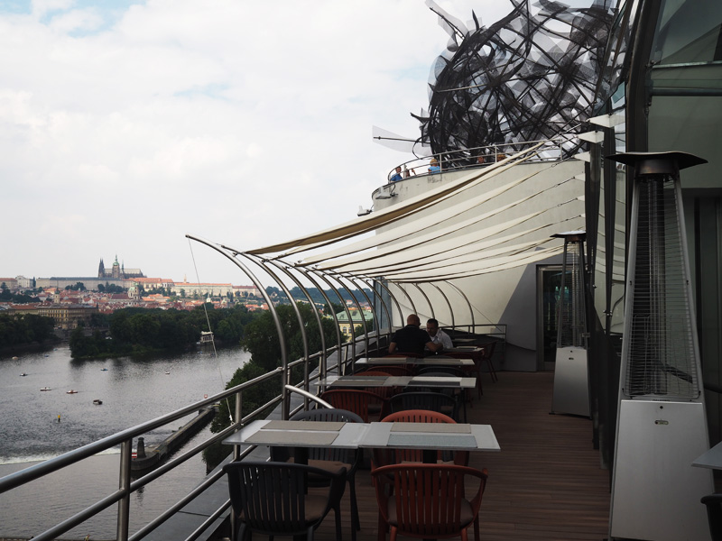Tahle okouzlující restaurace se nachází v sedmém patře Tančícího domu, ze kterého je nádherný výhled na celou Náplavku a na Galerii Mánes. Tohle je konkrétně foto výhledu přímo od našeho stolu.