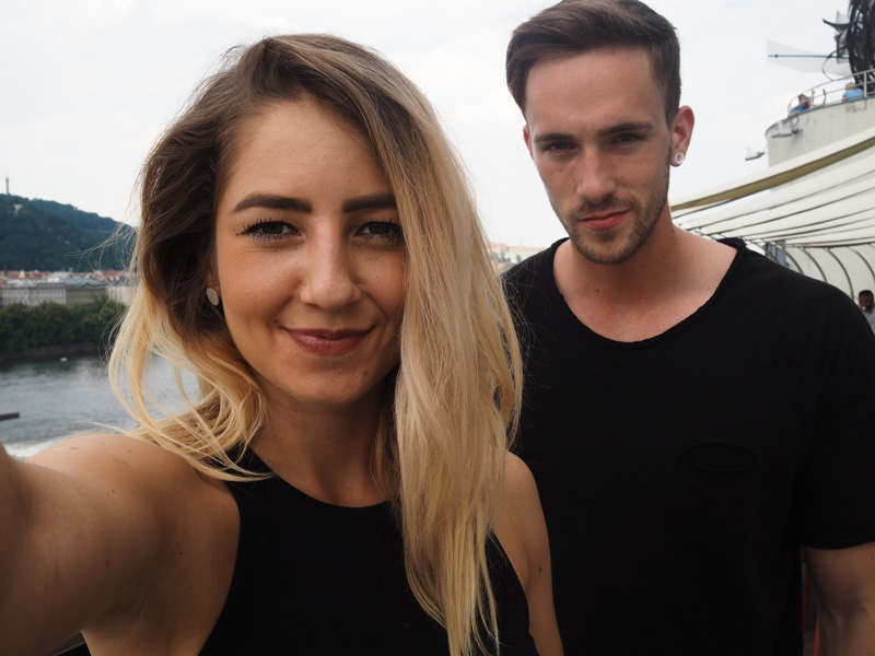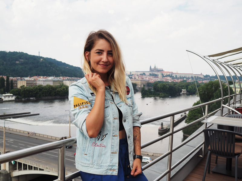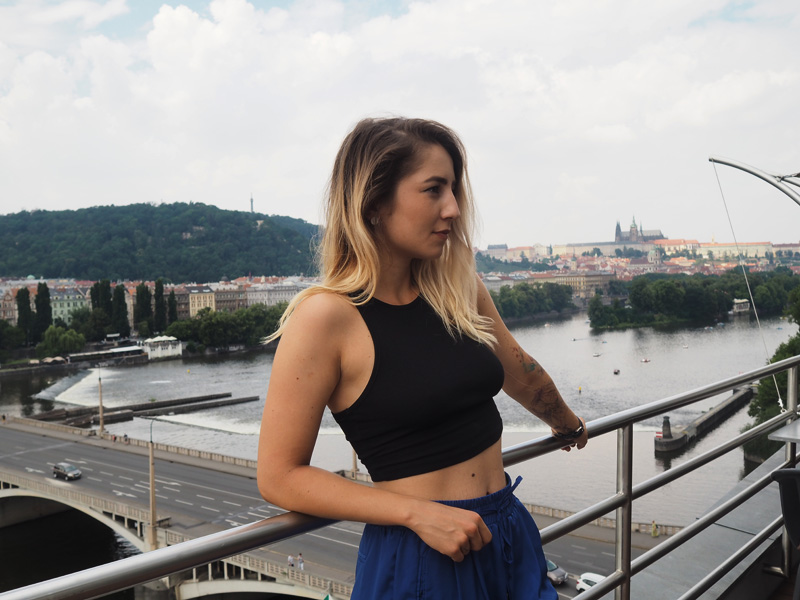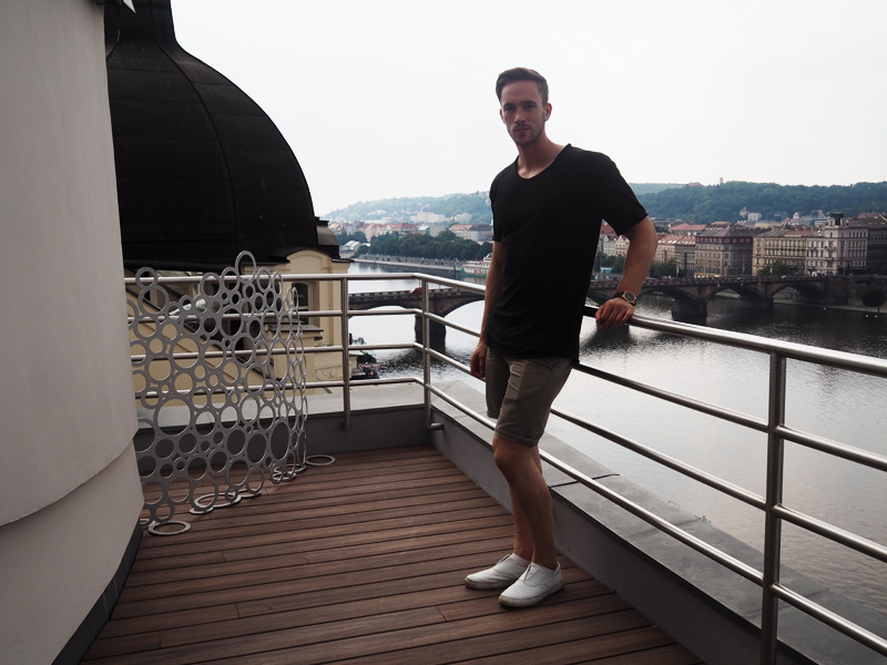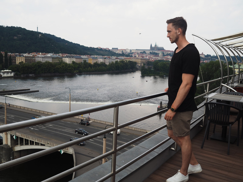 No a pak jsme si dali na chvilku pauzu. Kuba si chvíli čmáral a pak jsme se šli podívat na terasu, kde byl ten výhled opravdu na jedničku s hvězdičkou. Doufám, že tam někdy vyrazíme za tmy na drink a budem mít rušnou noční Prahu přímo pod sebou!