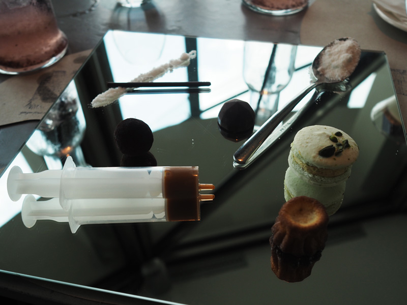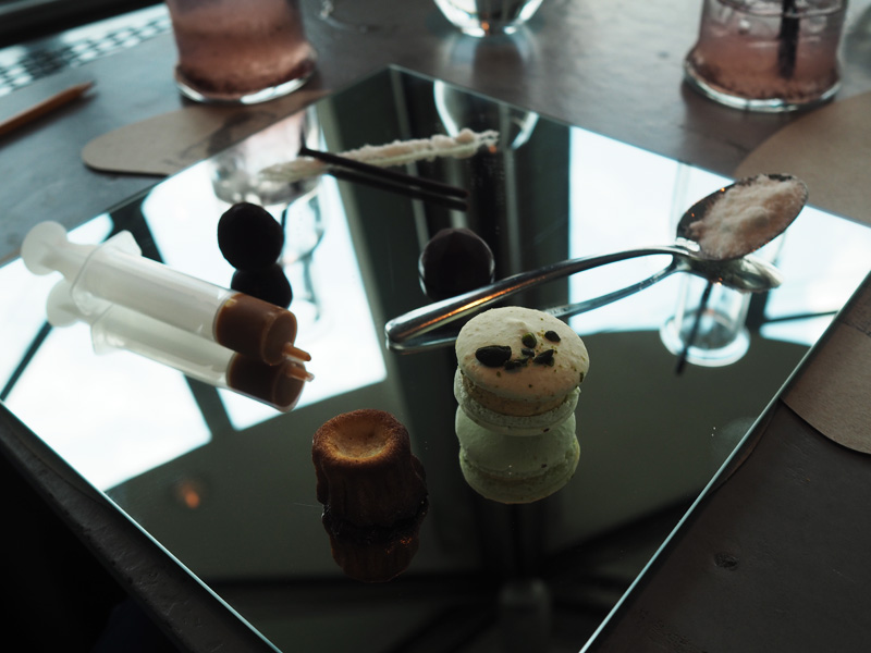 “Punk dezert” jakožto výběr minisladkostí mi vyrazil dech hlavně formou servírování a já tak pochopila, proč to má v názvu ten punk. Vypadalo to opravdu jak drogy na kusu zrcadla a mě bylo až líto to sníst. Za tohle je opravdu 11 bodů z 10, protože řekněte mi – viděli jste někdy něco podobnýho?!