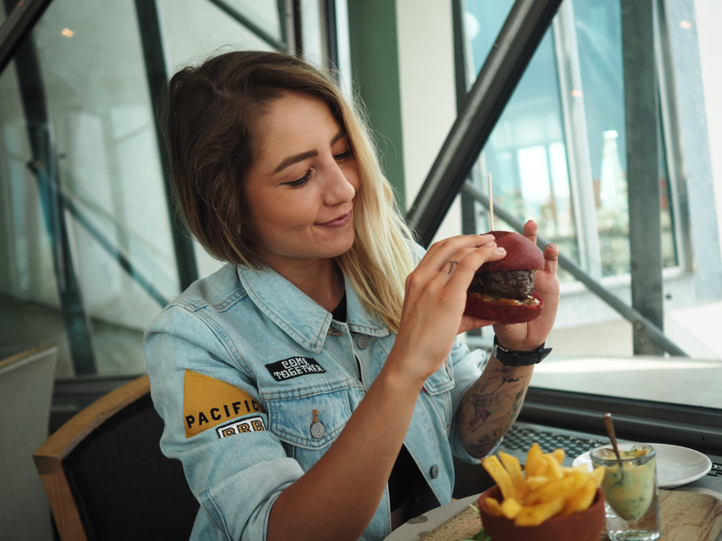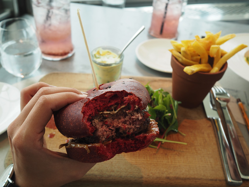 Moje “dám si něco zdravýho” se rozplynulo ve chvíli, kdy jsem na jídelním lístku viděla Red burger s hovězím žebrem marinovaným v coca-cole s černým sýrem, cibulovou marmeládou a domácíma hranolkama smaženýma v arašídovém oleji. Mám Vám říkat, jak neuvěřitelná slast to byla?! Občas proklínám Kubu za to, že mě naučil jíst burgery a já jim naprosto propadla, protože bych nějakej nejradši měla obden. Třeba tenhle. Prosííííím!