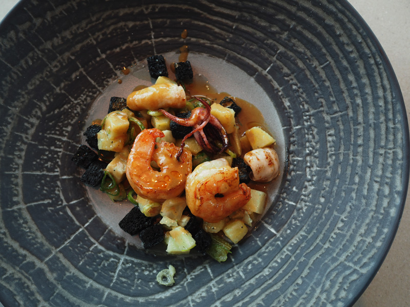 Já jsem jako správný milovník plodů moře, který si sama doma nedokážu chutně připravit, zvolila jako předkrm právě směs grilovaných krevet a chobotniček, což byla rozhodně skvělá volba.