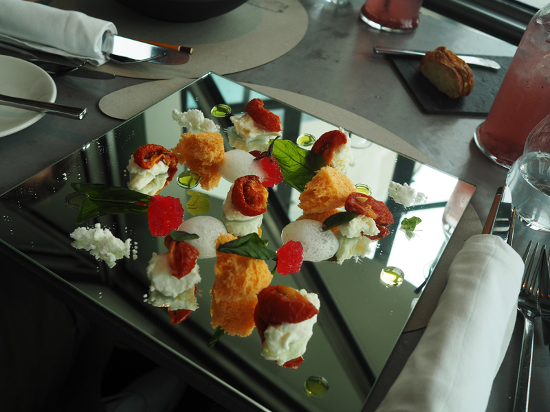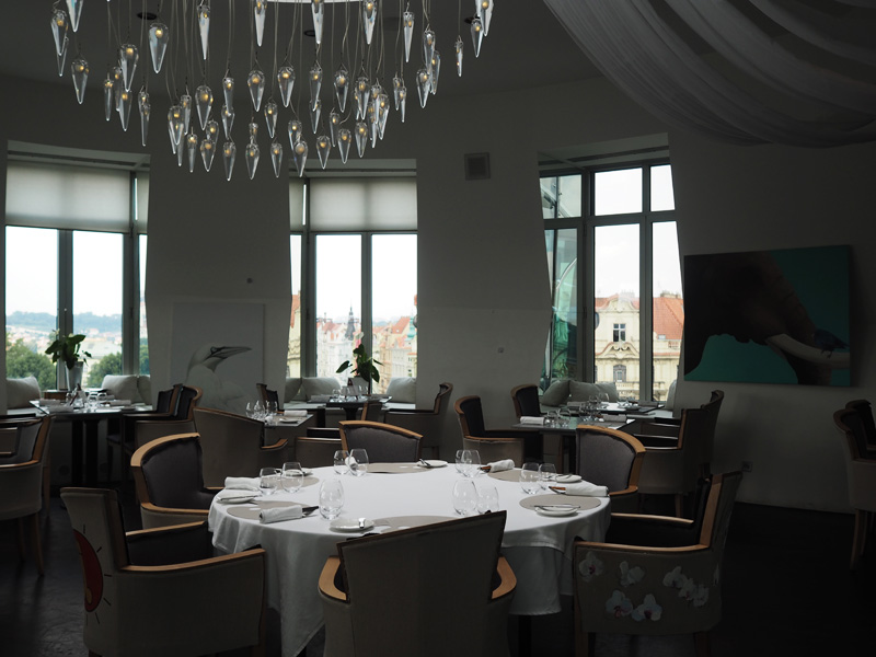Asi jsem staromódní, ale hranolky v květníku ani moučník a předkrm na zrcadle mne nějak moc neoslovují – mám raději jídlo na talířích ;-). Mimochodem jídlo na zrcadle je podle mne dobrý obchodní tah – dělá totiž dojem, že je ho jednou tolik ;-). Ale výhled z restaurace je krásný a třeba ty mořské plody, losos a panna cotta vypadají podle mého gusta a určitě byly moc dobré