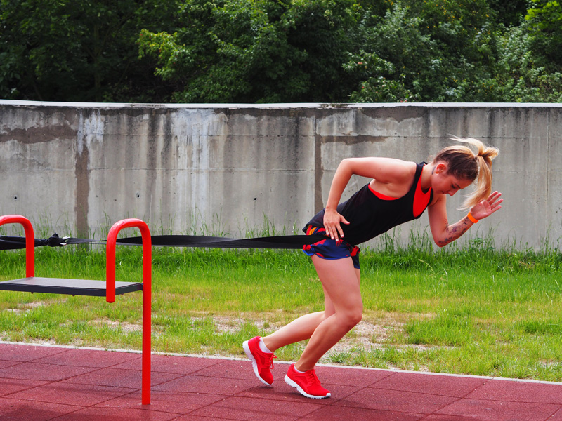 Na rozehřátí, který funguje spolehlivě a tep se mi pak rovná asi půl hodiny, využívám tohle “napínací lano”, který někde zaháknu, vlezu si do něj a snažím se o krátký sprinty. Ta síla, jakou Vás to drží a tlačí zpátky je neuvěřitelná, takže hlavně když se vracíte zpátky, musíte dávat fakt pozor a nepovolit tělo, aby Vás to nestrhlo po zádech.