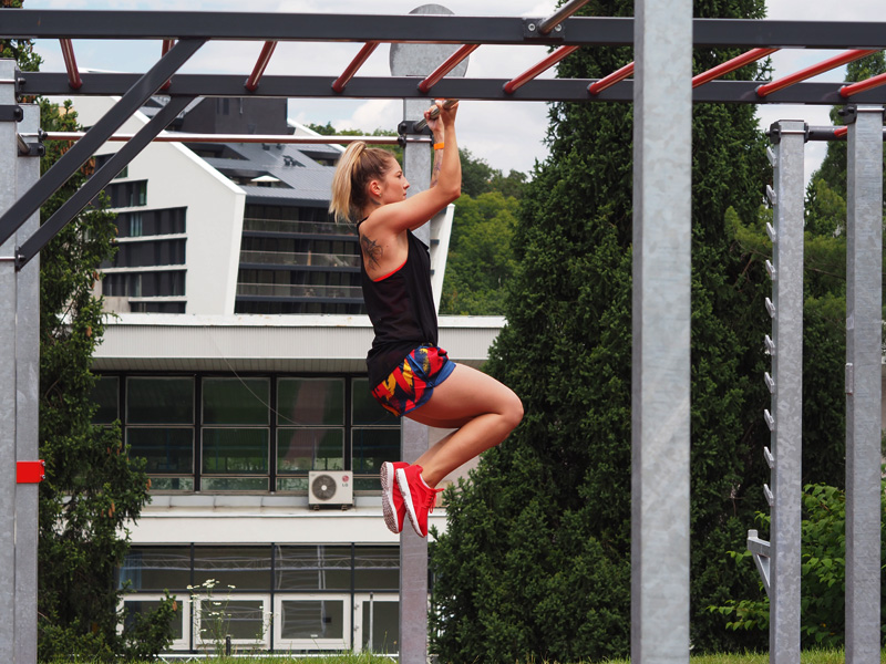 Dnešní fotky jsme nafotili s Kubou v mým fitku – v Radlicích – kde je poměrně nově otevřený právě tohle outdoor hřiště. Není zdarma ani volně přístupný, jak si pár z Vás myslelo a ptalo se mě na to na instagramu, patří k fitku a je potřeba projít recepcí, vyzvednout si tam klíče a fitkem to projít právě k tomuhle místu. To jen tak pro info a teď už k mým oblíbeným cvikům, který jsem schopná udělat a který ve většině případů neznamenaj žádný visení na rukách, který fakt ještě moc nedokážu.