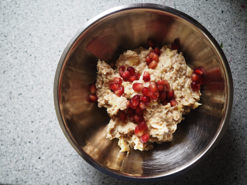 Tady už jsem podlehla ovesnejm vločkám a pomalu se k nim zase navrátila. Tady teda opravdu #mojeovesna s rozmačkaným banánem a granátovým jablkem.