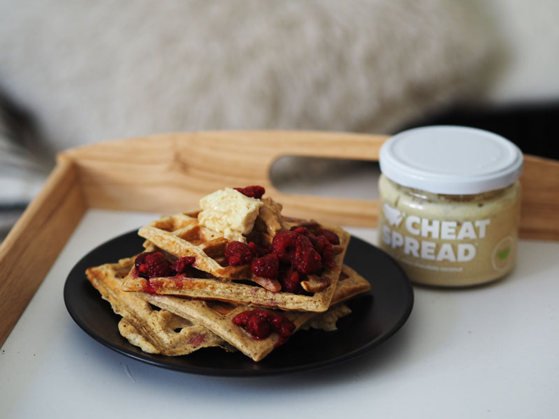 Novinkou u nás doma v Praze je vaflovač, takže tady první domácí vafle z vloček, banánu, proteinu a tvarohu.
