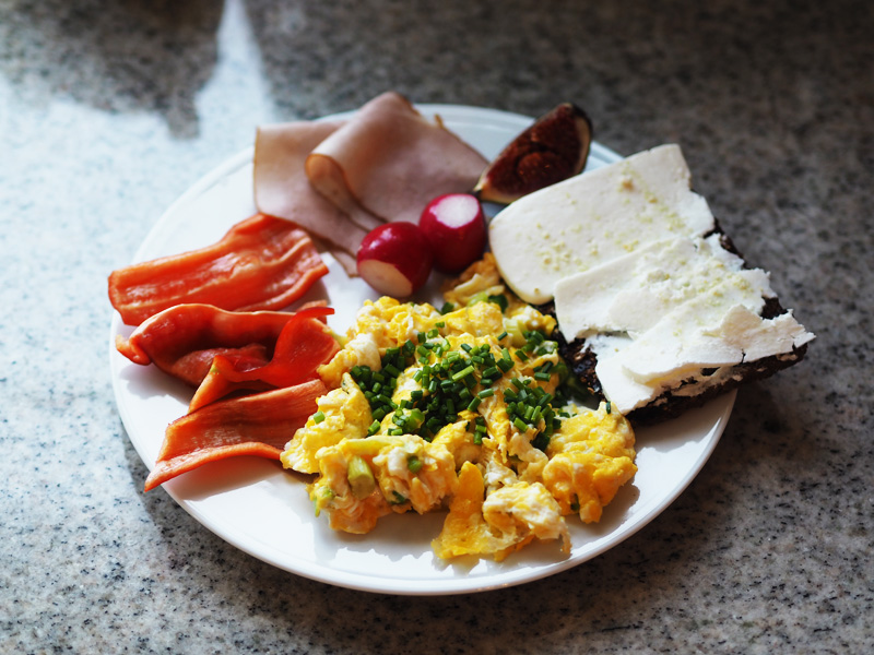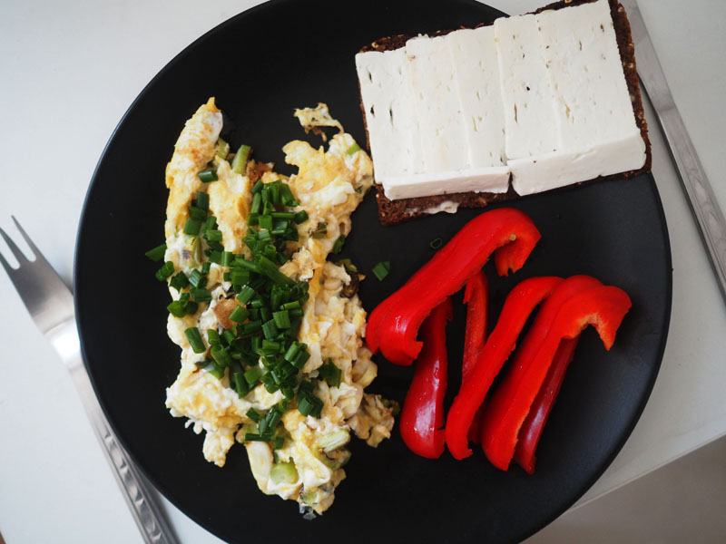 Snídaňový koutek logicky začíná. Slaný variace jsem si hodně oblíbila, vajíčka mi prostě chutnaj, nejvíc právě míchaný a zeleninu (hlavně tu domácí) uplně miluju.