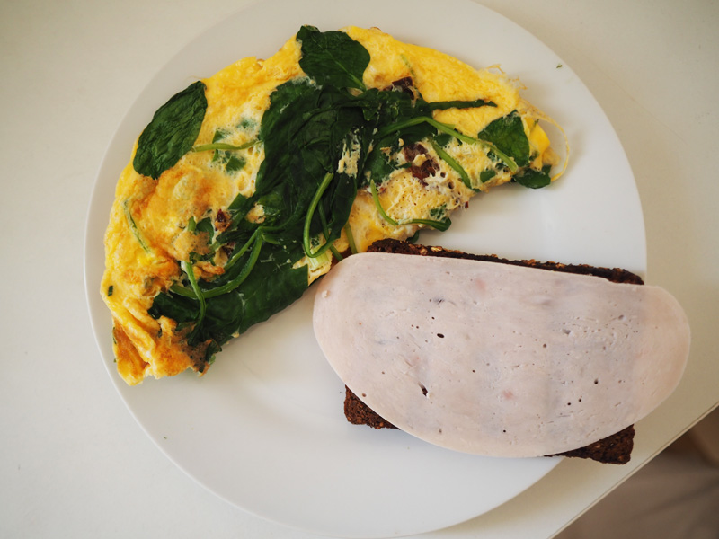 Když snídám něco jinýho než vajíčka, tak si je dávám aspoň večer nebo odpoledne jako svačinu. To ale dělám místo míchaných omeletu, která mi nejvíc chutná s rajčatama a špenátem.