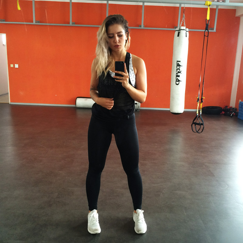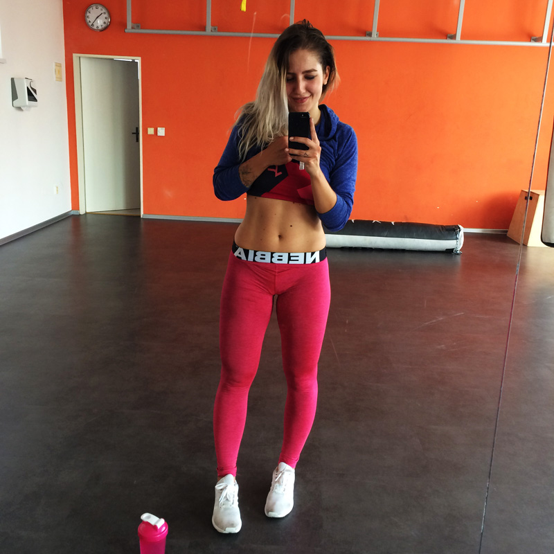 Jako člověk společenský, co není uplně fanda rutinního fungování, se mi osvědčila i varianta, kdy k sobě občas přiberu na trénink někoho dalšího. Třeba s přítele, kterej mě vždycky nakopne k větším výkonům a dá mi tipy na další cviky, co odkoukal od profesionálů. Nebo Karol, se kterou jsme si daly skvělej full-body trénink a naplánovaly si několik dalších, protože takový oživení jsou potřeba. Nechtěla bych mít vyloženě sparinga, protože ráda cvičím sama, jedu si to svý a mám v uších sluchátka, nicméně pro oživení a jako nakopnutí je to ideální.