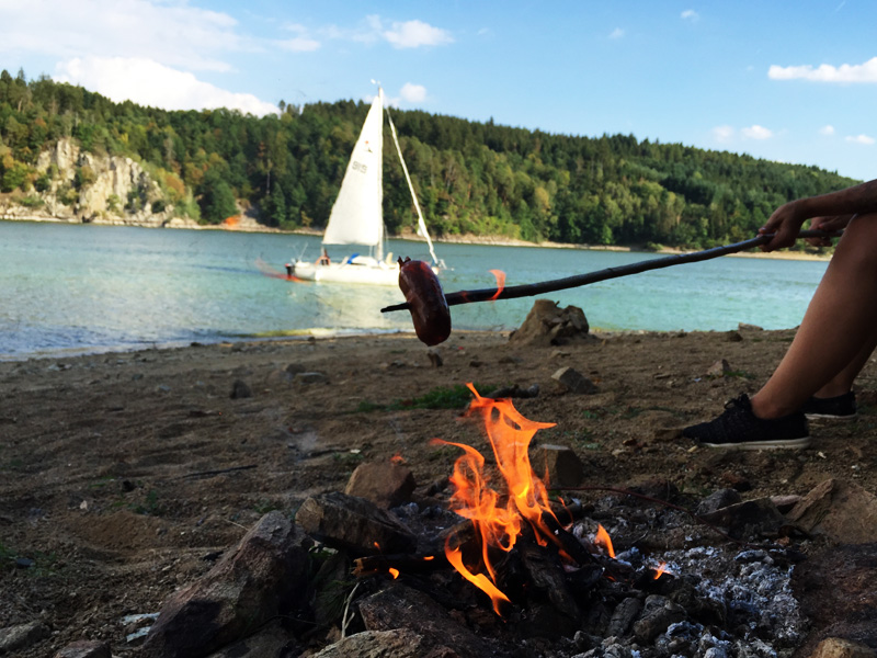 V rámci této rady chci zdůraznit, že odjet na víkend neznamená navařit do krabiček svý jídlo na dva dny a najít fitko nejbližší k místě ubytování. VŮBEC PROBOHA! Když den na chatě, tak se vším všudy. My jsme od babičky dostali ke snídani čerstvý housky se šunkou a odpoledne si u přehrady opekli buřty. Protože proč by ne, vždyť to k tomu patří. A bylo to kouzelný a já měla úsměv na tváři celý dva dny od rána do noci.