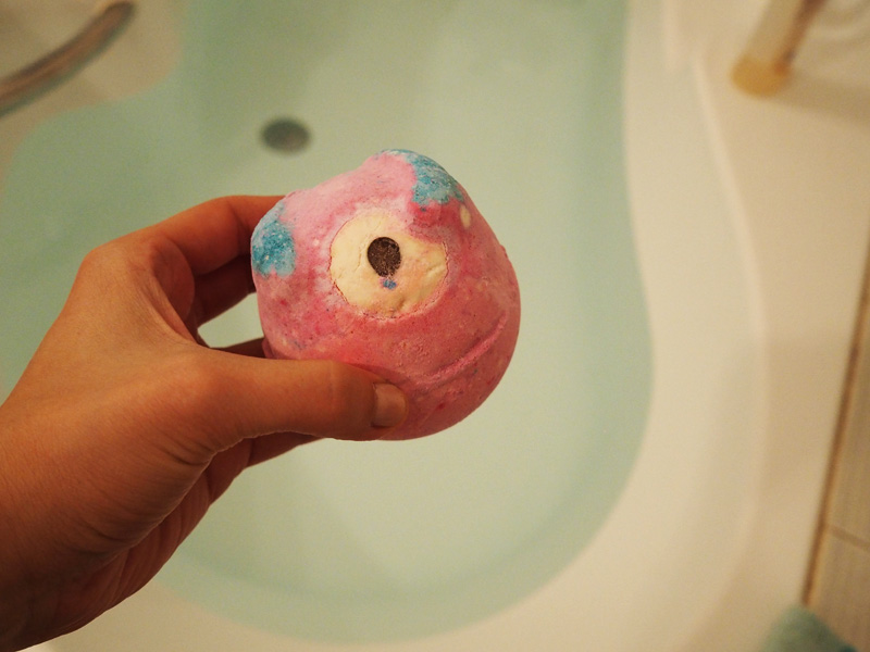 Jeden večer už na mě dolehl stres a nevěděla jsem co se sebou… Naštěstí jsem měla po ruce tuhle příšerku z Lushe (fakt, je to Monster bathbomb) a dala si tak růžovo-modrou uklidňující koupel.