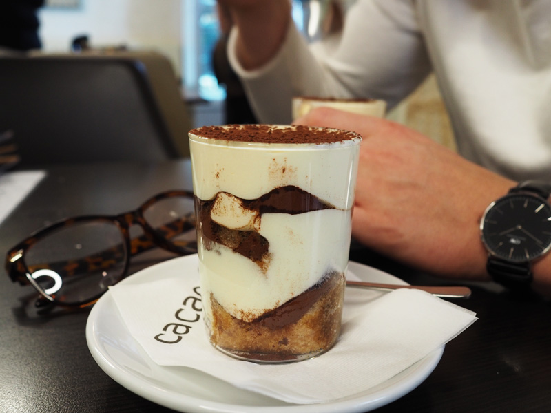 Konečně jsme se taky dostali k tomu, abychom v Cacau vyzkoušeli něco novýho – tentokrát tiramisu, který je už pár týdnů jedinej nezdravej dezert, kterej miluju. Ostatní dělejme, že mrkvovej dort je zdravej mi už nechutnaj.