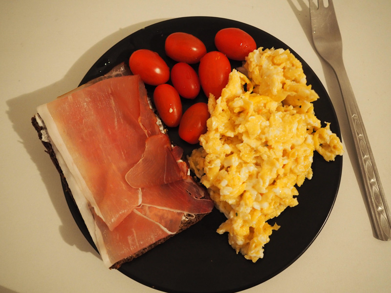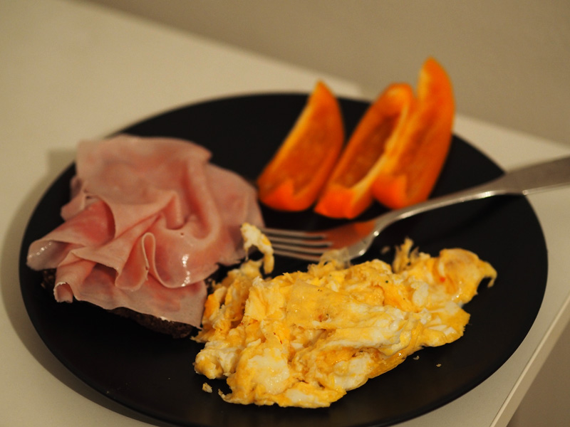 No a teď bych se teda pustila do toho, jak vypadá můj jídelníček. Ukážu Vám fotky každýho jídla i s popiskem toho, z čeho to je a jaký to má hodnoty (P=protein, C=carbs, F=fat).