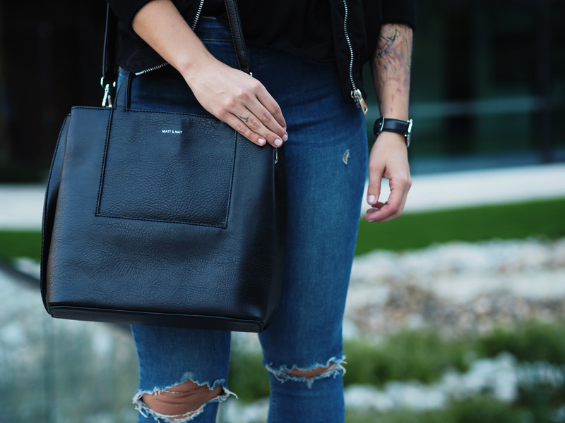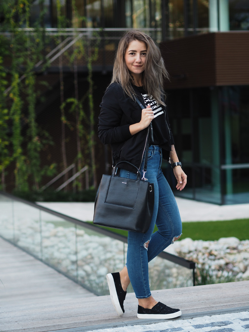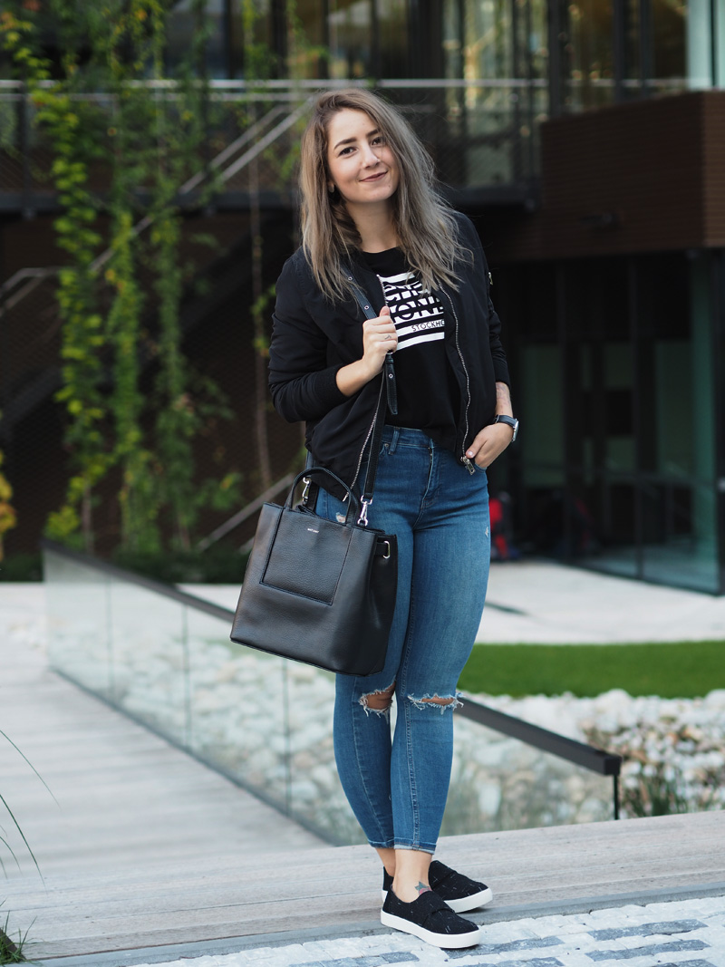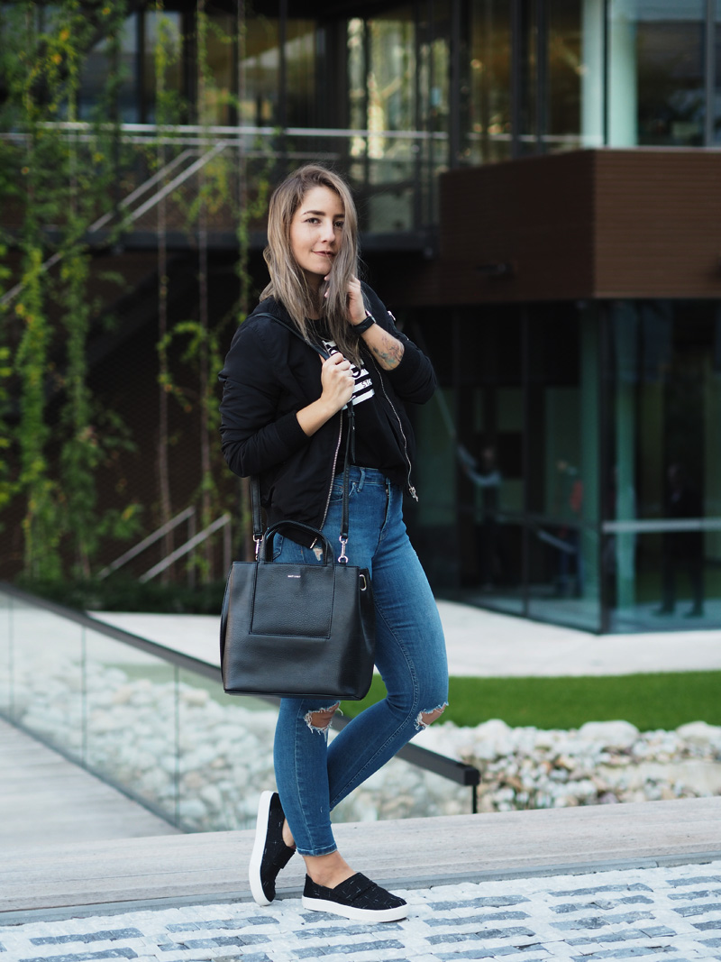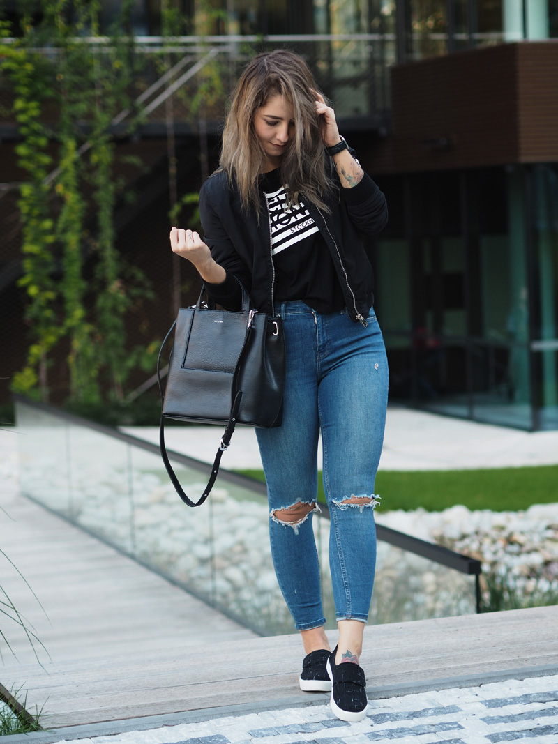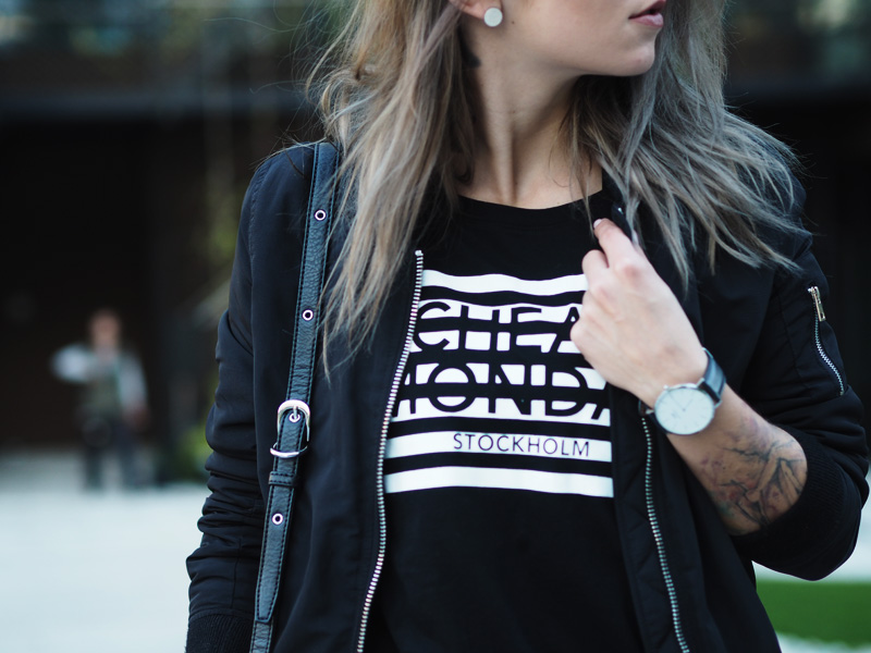 Jsem typická žena sběračka. Sbírám oblečení, kabelky, boty, hodinky. A přitom točím dokola pořád ty stejný věci. Při blížícím se výprodeji šatníku (už tuhle neděli v Praze v The Senses – více info TU – koujete přijít!!!!) váhám nad každým vyřazeným kusem a pětkrát měním názor, jestli ho teda prodám nebo se-třeba-někdy-bude-ještě-hodit-a-bude-mi-líto-že-jsem-se-ho-zbavila. Eeeehm. Oblečení mám plný skříně a většinu z něj nenosím. Většina jsou navíc nekvalitní věci sehnaný ve slevách nebo ze spoluprácí se zahraničníma e-shopama. V tomhle jsem se naštěstí poslední dobou HODNĚ zlepšila. Mnohem míň nakupuju, protože vlastně ani nemám za co a když už, tak jdu po konkrétní věci. A taky po kvalitní věci. Myslím, že na tohle si každej musí přijít sám a u mě ten moment nastal ve chvíli, kdy se mi podařilo naskladnit pár kvalitních kusů oblečení a na vlastní oči jsem viděla ten rozdíl. A na vlastní kůži ho i cítila. Neříkám, že všechno, co jsem si kdy objednala ze zahraničí jsou hadry, i když většina jsou, přesto je pár kusů, ke kterým se občas ráda vrátím. Základy šatníku se ale vyplatí mít opravdu kvalitní. A kabelky a boty. Protože v konečným důsledku jsou to právě detaily, co dodaj outfitu šmrnc nebo ho uplně shoděj. No a všechny věci, co mám dnes na sobě jsou právě z mého období prozření a orientace na kvalitnější věci. Pořád nevydělávám tolik peněz, abych si mohla nakupovat v COSu (ale všechno bude, jednou jo!!), ale konečně mi dává větší smysl investovat do trochu dražšího kousku než si koupit pět triček ve slevě.