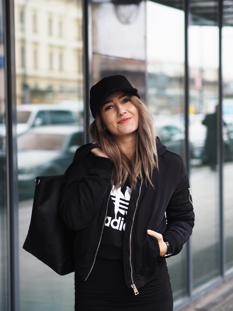 OdpovědětVymazatMně se to líbí! Pro mě ideální kombinace, protože jsem furt zvyklá na sportovní a sukně a halenky jsou pro mě trest (na to jsem si vybrala parádní školu, fakt..). Každopádně to máš super B'n'W sladěný, tenhle styl mám nejradši 🙂