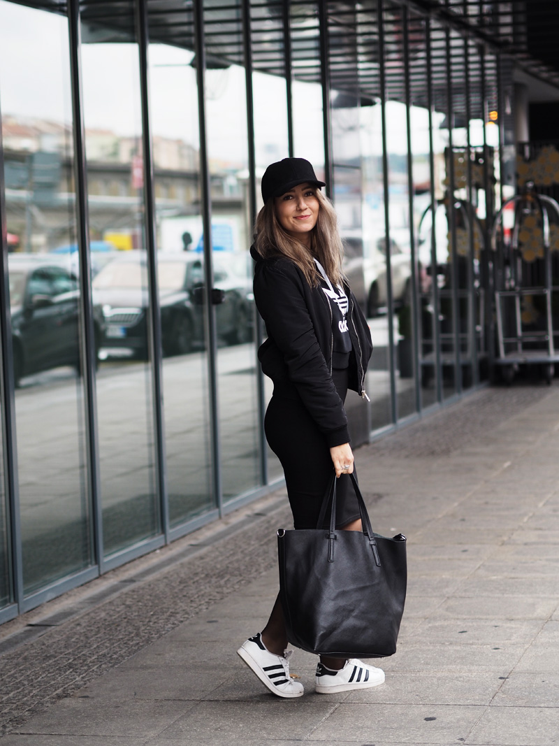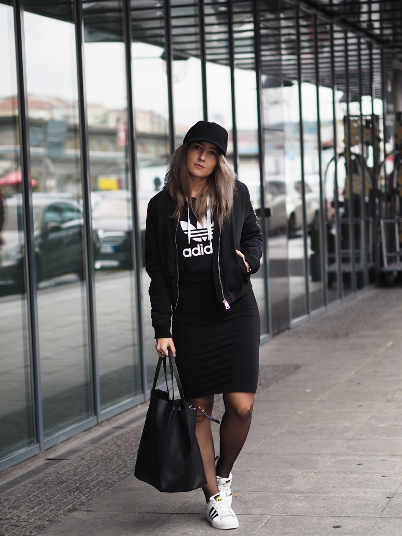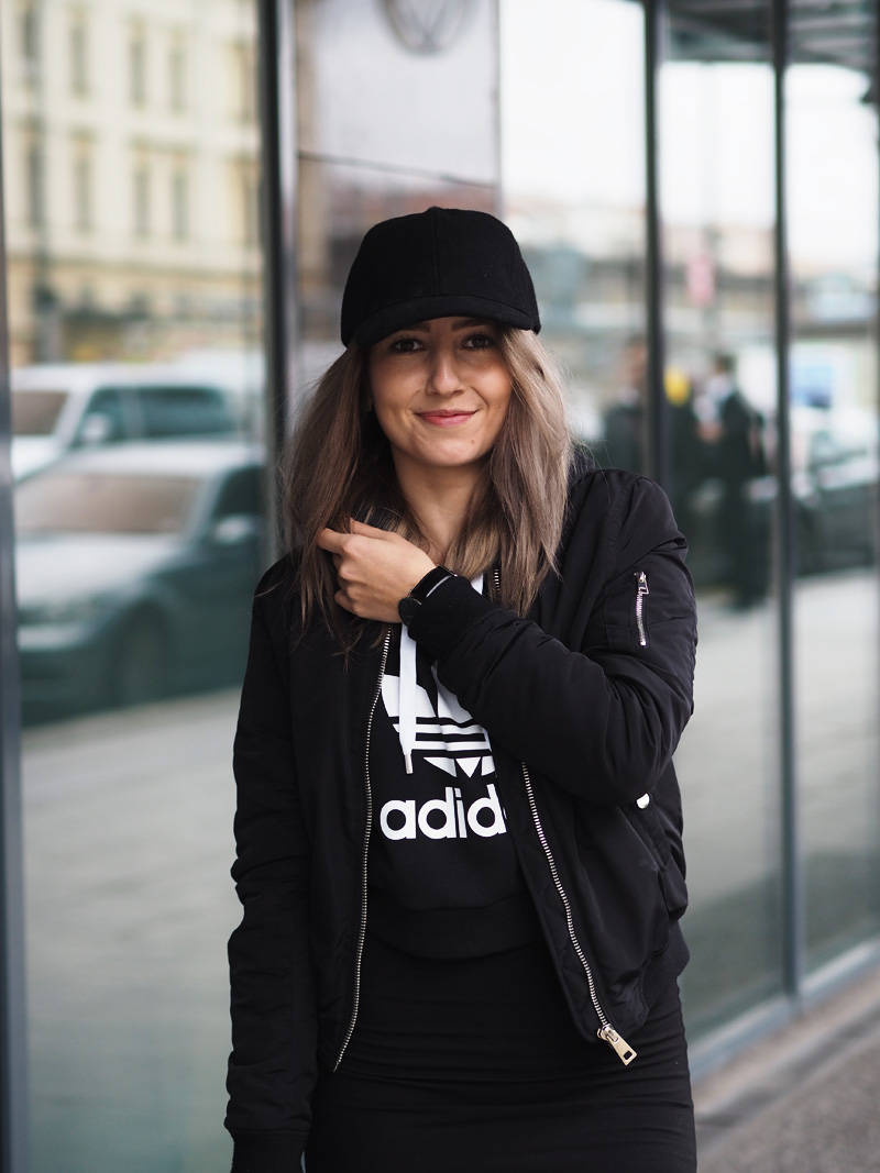 Bomber – STRADIVARIUS / crop shirt – ADIDAS via WOODIES / skirt – H&M / cap – ZARA MEN / bag – MANGO OUTLET / watch – DANIEL WELLINGTON (MEN)