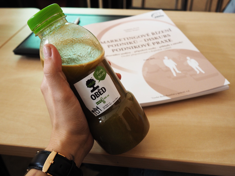 Následně jsem pádila do školy a oběd si nechala až na tam, protože mi bylo jasný, že večer bude krize a chtěla jsem mít co nejvíc šťávy v zásobě. Ve škole jsem v tom taky nebyla sama, protože jeden můj spolužák jel v Očistě taky, takže jsme tam ostatním smrděli naší zelenou šťávou, která díky bílé ředkvi opravdu moc vábně nevoněla, ale dobrá byla, to jo. Měli jsme předmět, ve kterým jsem nutně potřebovala dávat pozor a tři hodiny v kuse jsem si psala zápis a snažila se vnímat. Nejdřív to šlo, ale pak už ne. Nedokázala jsem vnímat, dělalo mi problém opsat větu z prezentace, aniž bych ji během toho nezapomněla nebo neudělala x překlepů. Zavírali se mi oči a kručelo mi v břiše.