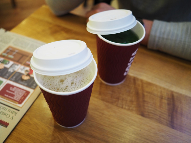 Kuba si mě vyzvedl a stavili jsme se na čaj, protože jsme oba byli pěkně vymrzlí. Z počasí a taky z toho, že ty šťávy jsou hodně chladivý a já to jako teplomil nesla mnohem hůř než na jaře. Samozřejmě jsme měli strašnou chuť na kafe a na všechny dortíky ve vitríně.