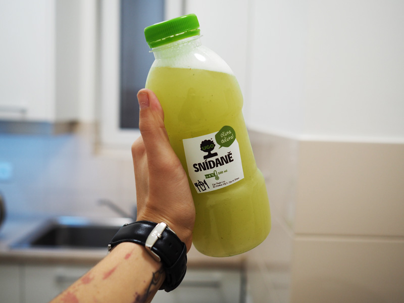 Třetí den (včera) jsem se ráno zase cítila dobře, ale už jsem se tím nenechala ukonejšit a bála jsem se, že to na mě v práci zase padne a tak jsem si k první snídani udělala míchaný vajíčka. Pak jsem si vyzvedla další dávku šťáv a snídaňovou lahvičku si dala jako svačinu. Najednou bylo všechno v pohodě, byla jsem schopná dávat pozor a práce utekla jakoby nic. Takže i zbytek dne jsem prokládala menší porce jídla s šťávama a cítila se mnohem líp a schopnějc než předchozí dny.
