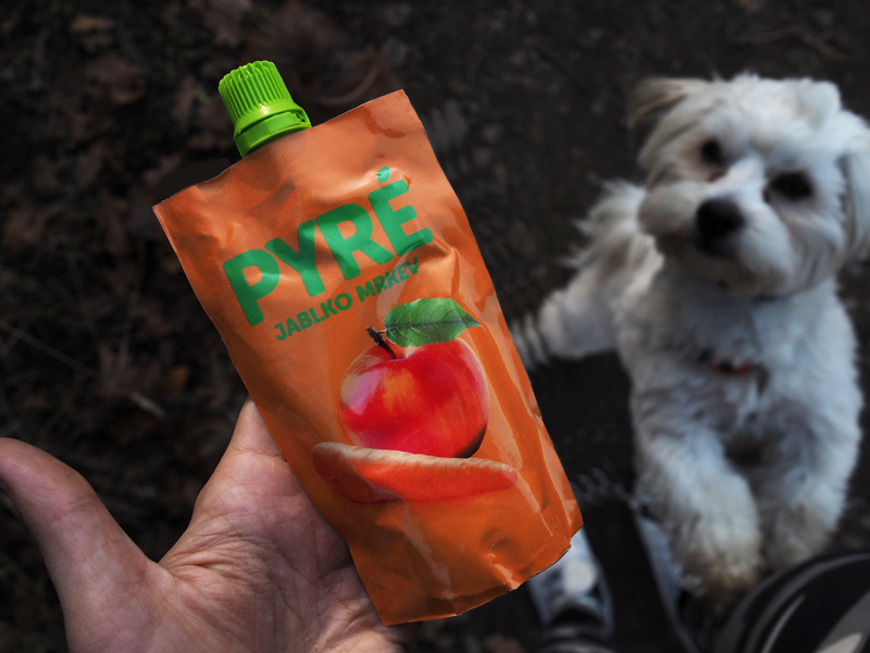 Odpoledne jsem vyrazila s psíčkama na dlouhou procházku a na cestu jsem si vzala další dávku vitamínů – kapsičku pyré. Nebaví mě chystat si svačiny, nosit si krabičky a i ta mandarinka se mi v tašce často pochroumá, takže kapsička pyré je perfektním řešením. Prostě správná varianta svačiny, takže se jí určitě budu dál držet.