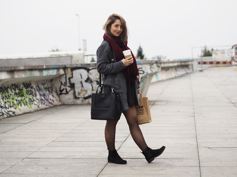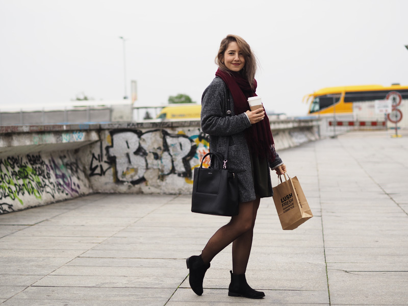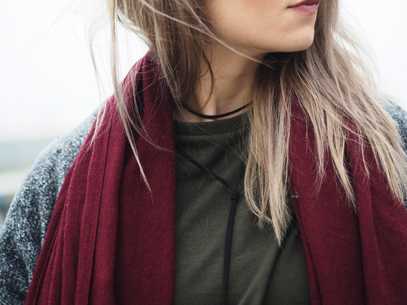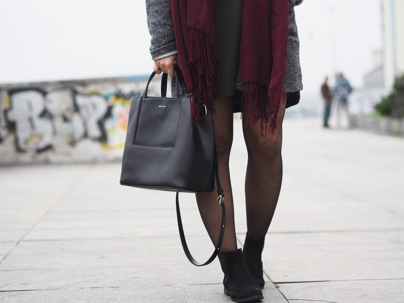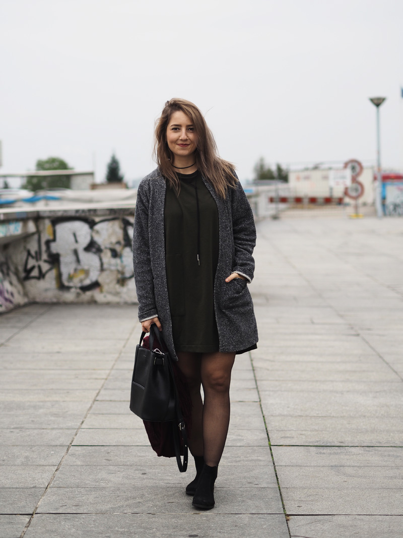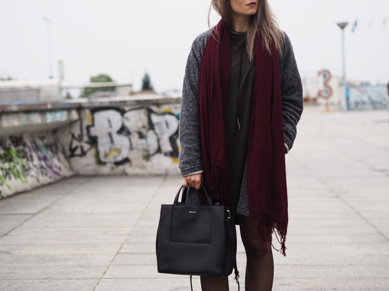 Existujou víc podzimní barvy než khaki a burgundy? Podle mě teda ne. Tyhle dvě barvy jsou pro mě jedním z důvodů, proč mám ráda podzim. Přesně takovýhle outfity bych mohla nosit každej den, jsou totiž maximálně pohodlný, nikde nic netlačí ani nepne a zároveň jsou stylový. Oversized šaty ze Zary jsou navíc mým nejmilejším přírůstkem v šatníku za poslední týdny a trošku mě mrzí, že je nevidíte v plný kráse. Nicméně i kombinace s kabátem a šálou jim sluší, že jo? No a choker nosím ke všemu, k čemu se aspoň trochu ladí a považuju ho za nejgeniálnější doplněk.