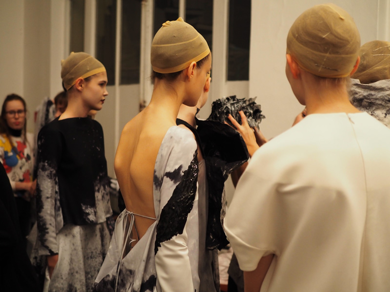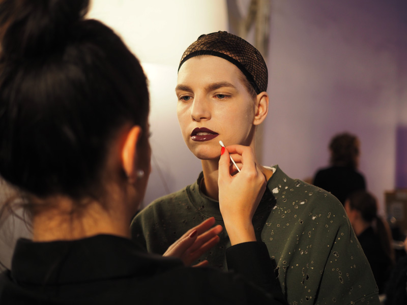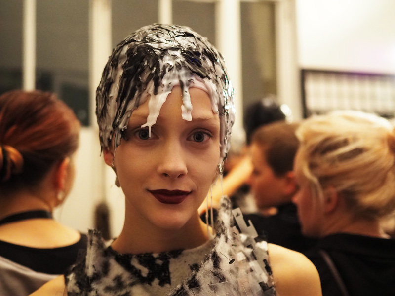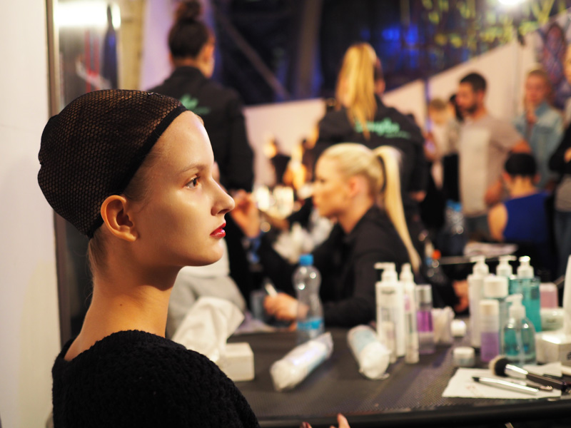Kuba se potom vrátil domů do postele a já pokračovala s Nikčou na Výstaviště, kde nás čekala první řada na večerních přehlídkách a co hlavně – možnost nahlédnutí do zákulisí, kde Douglas tým líčil modelky.