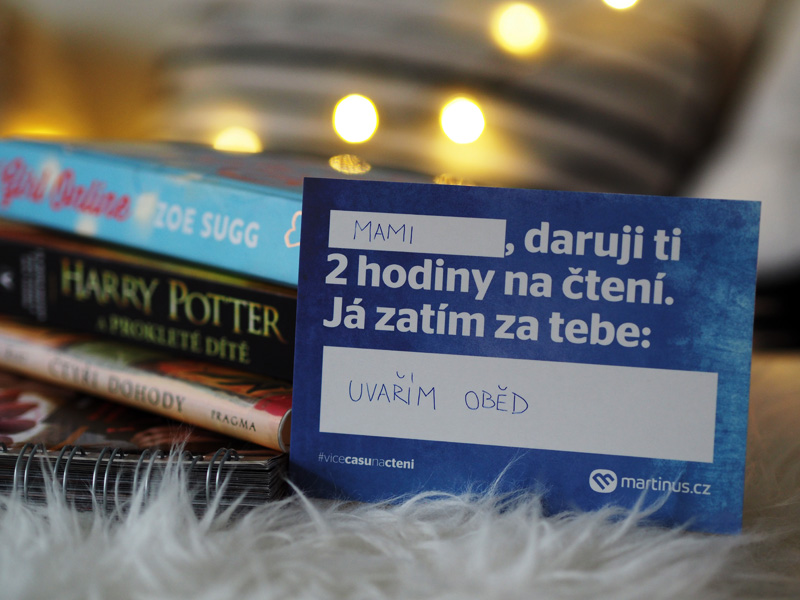 Hrozně vděčným dárkem jsou i knížky a rozhodně si každej z nás aspoň jednu přeje. Ne vždycky je ale na čtení čas a proto přišel Martinus se skvělým nápadem na kampaň Daruj čas na čtení a k zakoupený knížce dostanete i kartičku, na kterou vyplníte věnování a co pro daného člověka uděláte, aby měl on čas na čtení. To mi přijde fakt milý a hezký.