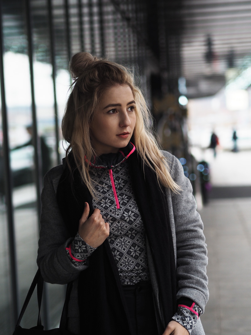 Dnes se hlásím pro změnu s outfitem a to poměrně netradičním. V tý kose, která venku je, jsem se musela přeorientovat na trochu promyšlenější oblíkaní, než že na sebe ráno hodím tričko, cardigan bez zapínání a kabát bez zapínání, což se mi několikrát stalo a po cestě do práce mi ještě zima nebyla, zatímco odpoledne jsem se málem profackovala a nechápala, kde je můj mozek, když se ráno oblíkám. Když mi ale přišlo od mý milovaný značky Kari Traa triko z merino vlny, což je neskutečně příjemnej, pohodlnejch a hřejivej materiál, napadlo mě ho využít jako jednu vrstvu oblečení a nechat třeba koukat rukávy. Vznikne tím zajímavej detail a já tak můžu klidně mít i ten nezapnutelnej kabát, protože je mi krásně teplo. A taky se strašně těším na hory, protože primárně je tohle oblečení myšlený jako podvlíkací prádlo na lyže a když ho mám na sobě, tak už jsem myšlenkama na širokejch alpskejch sjezdovkách. Doopravdy tam ale budu až v půlce ledna po ekonomických státnicích, haha. Už aby to bylo!