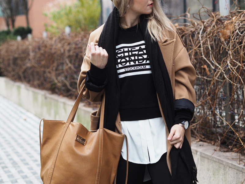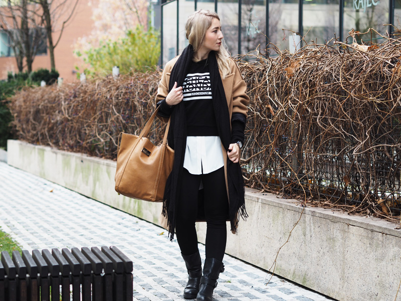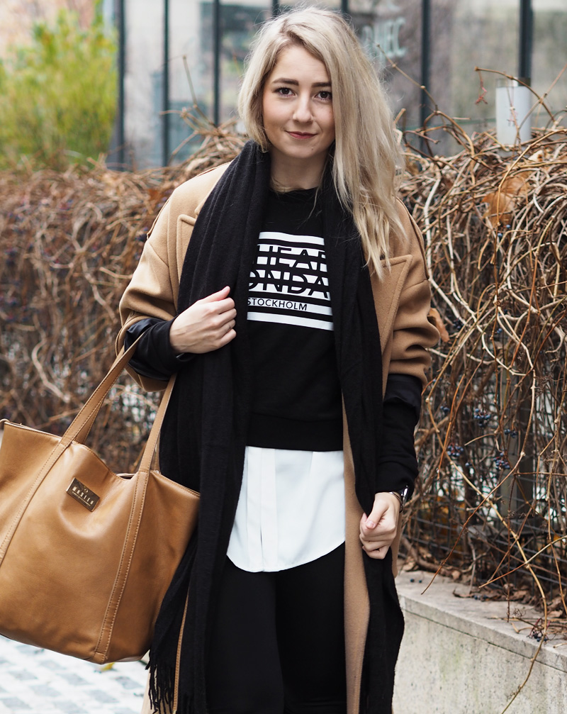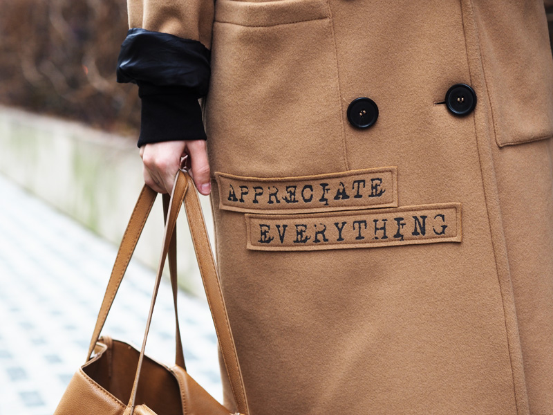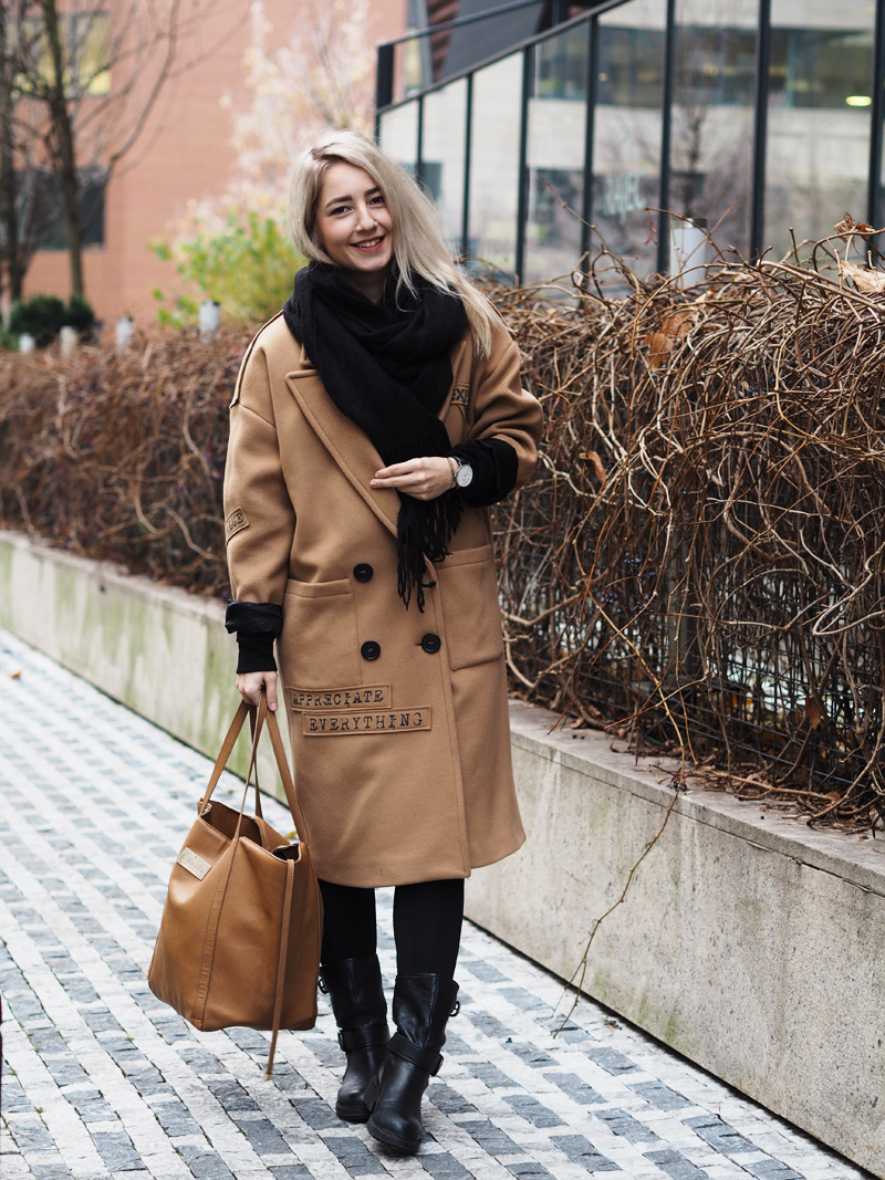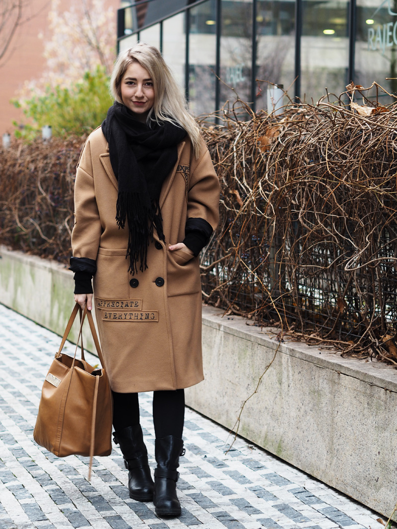 Konečně se soutěže přesouvají i na instagram a já mám čas vám ukázat fotky v mým novým a bezkonkurenčně nejvíc cool kabátu, kterej jsem kdy měla. Věděla jsem, že si letos konečně pořídím nějakej kabát ze Zary, protože jsem nějakej každej rok na někom obdivovala a nakonec jsem si odnesla dva, jeden klasickej dlouhej šedej a pak tenhle béžovej oversized s nášivkama, kterej mě baví uplně vším – barvou, střihem, designem. Zkombinovala jsem ho poměrně jednoduše, protože jedině tak správně vynikne, k legínům jsem vzala dlouhou košili s crop mikinou mý oblíbený značky Cheap Monday, kožený boty z Alda a největší kabelku, co mám, protože je skoro bezedná. Taky už jste mohli zaregistrovat, že mám dobarvenej ten přirozenej odrost a tady na fotkách je to konečně pořádně vidět a já jsem s tím strašně spokojená, jsem to zas mnohem víc já.