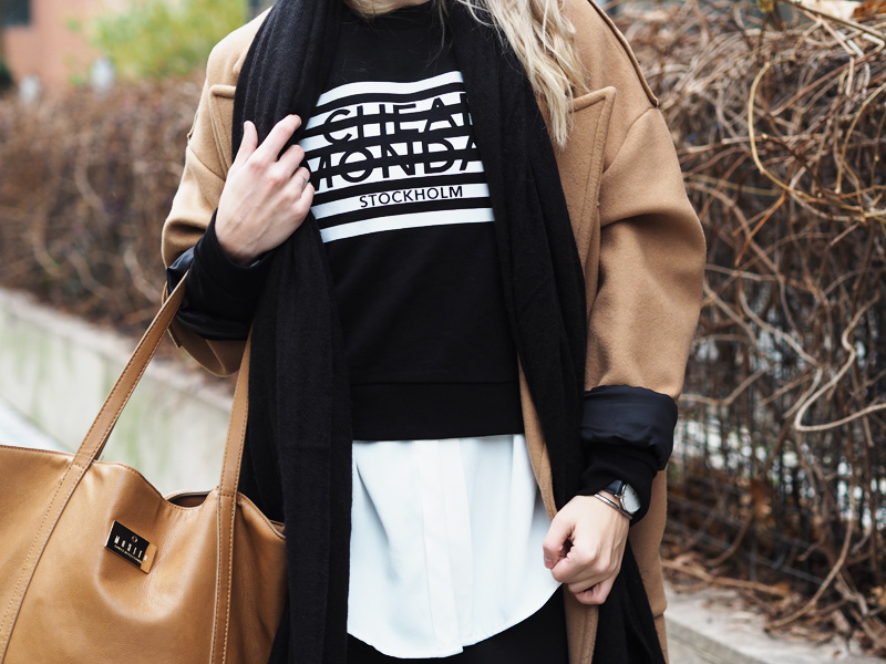 Konečně se soutěže přesouvají i na instagram a já mám čas vám ukázat fotky v mým novým a bezkonkurenčně nejvíc cool kabátu, kterej jsem kdy měla. Věděla jsem, že si letos konečně pořídím nějakej kabát ze Zary, protože jsem nějakej každej rok na někom obdivovala a nakonec jsem si odnesla dva, jeden klasickej dlouhej šedej a pak tenhle béžovej oversized s nášivkama, kterej mě baví uplně vším – barvou, střihem, designem. Zkombinovala jsem ho poměrně jednoduše, protože jedině tak správně vynikne, k legínům jsem vzala dlouhou košili s crop mikinou mý oblíbený značky Cheap Monday, kožený boty z Alda a největší kabelku, co mám, protože je skoro bezedná. Taky už jste mohli zaregistrovat, že mám dobarvenej ten přirozenej odrost a tady na fotkách je to konečně pořádně vidět a já jsem s tím strašně spokojená, jsem to zas mnohem víc já.