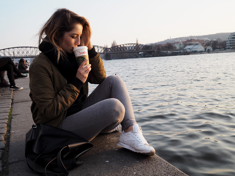 Dnes mám pro Vás outfit, ve kterým jsem včera strávila naprosto skvělej den a moc jsem si to užila. Hádám, že asi nejsem jediná, komu zvedne náladu, když se ve svým outfitu cítí fakt dobře. K tomu si přidejte konečně krásný počasí (který se dnes evidentně zas někde zapomnělo ://), dopoledne s mužem, kdy jsem si fakt užila to, že jsme na sebe konečně měli víc času než na brzkou snídani doma a pozdní večeři doma, což je většina našich dnů, takže jsme si udělali procházku na Brumlovku, nafotili fotky, já jsem si vyzvedla nový super legíny a zašli jsme na oběd do naší oblíbený Nálevny. Pak už se naše cesty rozdělili a šli jsme každej do svýho fitka. Já jsem tam hned vyzkoušela ty nový legíny a taky jsem si uvědomila, že jestli hodlám dostát svýmu předsevzetí (do června udělat shyb :DD), budu si muset máknout ještě o hodně víc, než doteď. Během chvilky času před workshopem od Olympusu jsem si na Andělu poslechla dva "pouliční umělce", což je něco, co na Praze naprosto miluju a i když fakt spěchám, u každýho se na chvíli zastavím a okouzlí mě to. Nejčastějc teda u Palladia (ty indiány na Andělu míjím obloukem :DD). A přišlo mi hrozně smutný, že okolo nich prouděj davy lidí, co ani nezvednou hlavu, aby se podívali, kdo tam vytváří tu super atmosféru, radši se dál mračej a někam pospíchaj, achjo