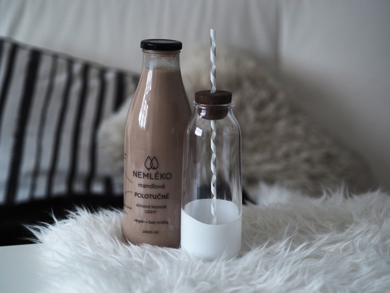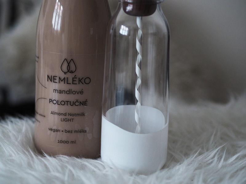 Vyzvedla jsem si taky Nemléko lahev a další novinku – polotučné mandlové nemléko. Je v litrový lahvi a stojí stejně jako ta půllitrová plnotučná. A chutná podle mě skoro totožně. Je výborný do kaší i do kafe, ale já ho rozhodně preferuju samotný, protože mi strašně chutná a přijde mi škoda ho s něčím míchat, haha.
